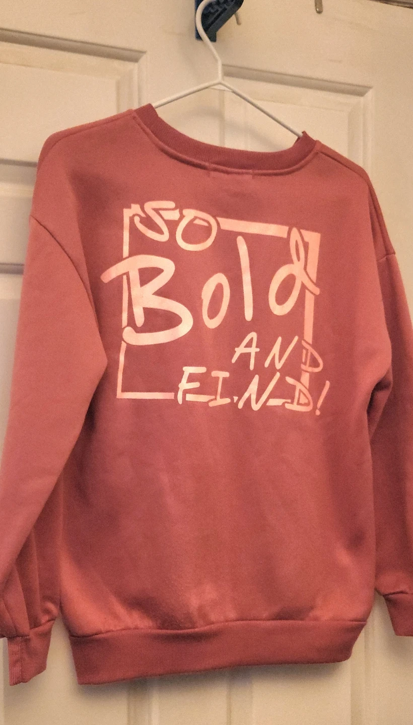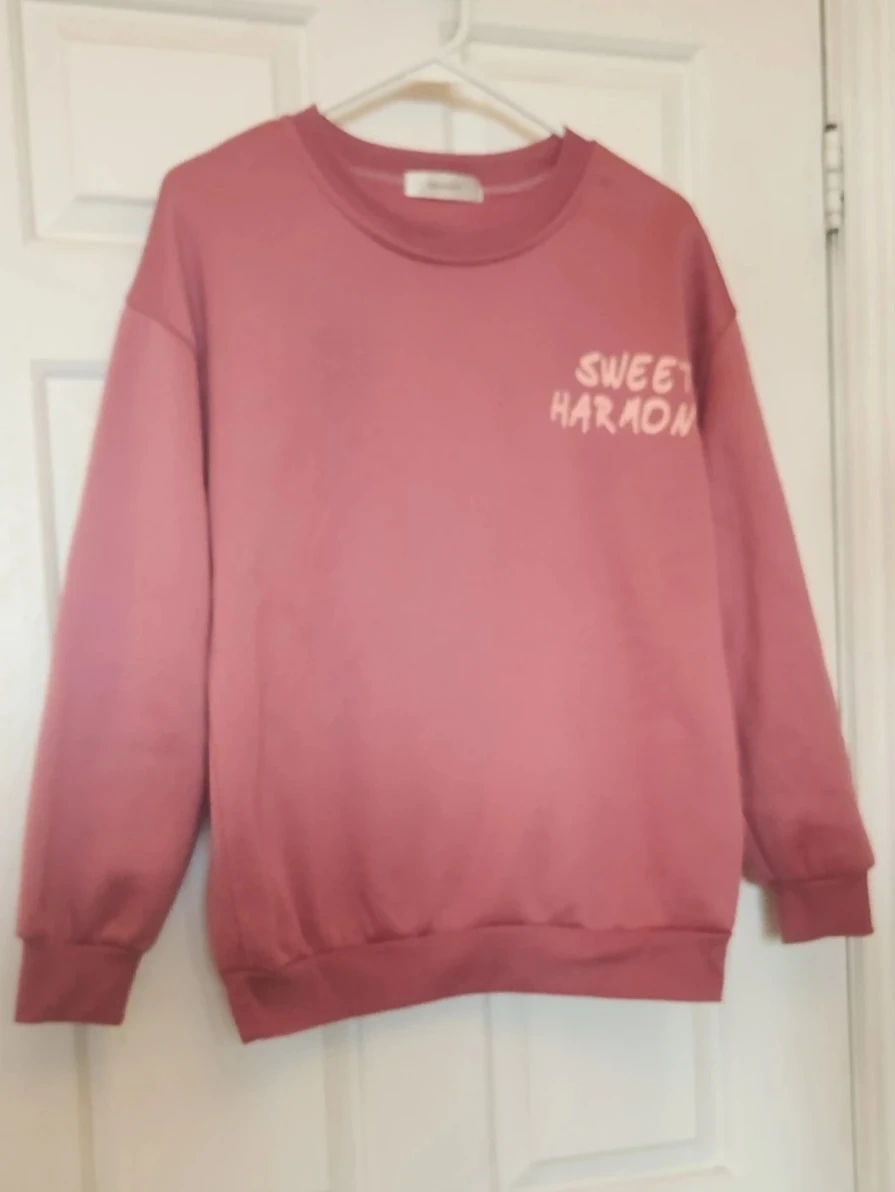 This BIFROST crewneck sweatshirt is a comfortable rose pink colour. It features "Sweet Harmon" on the front and "So Bold and Kind!" graphic print on the back. Cotton blend material.