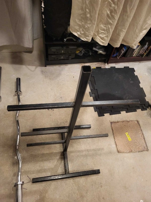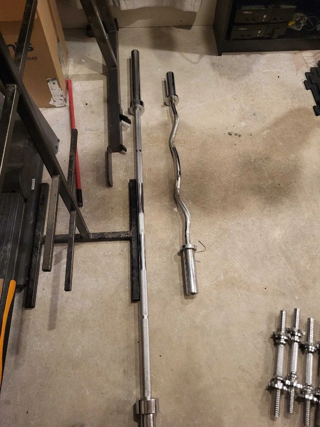 Located in Pineridge. Selling 2-inch weight plates (45lb), a bench bar for $80, a curl bar for $30, and a weight plate holder for $40. Buy all three items and get a free bench.