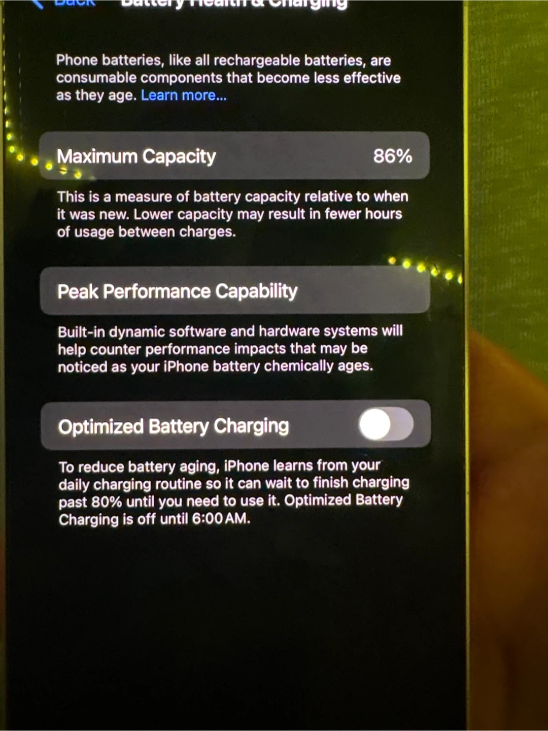 Battery health is %86