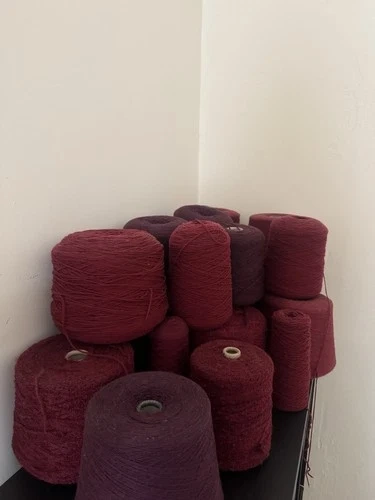 Offering a unique assortment of Italian wool and cashmere blend yarns, all in a beautiful burgundy color.