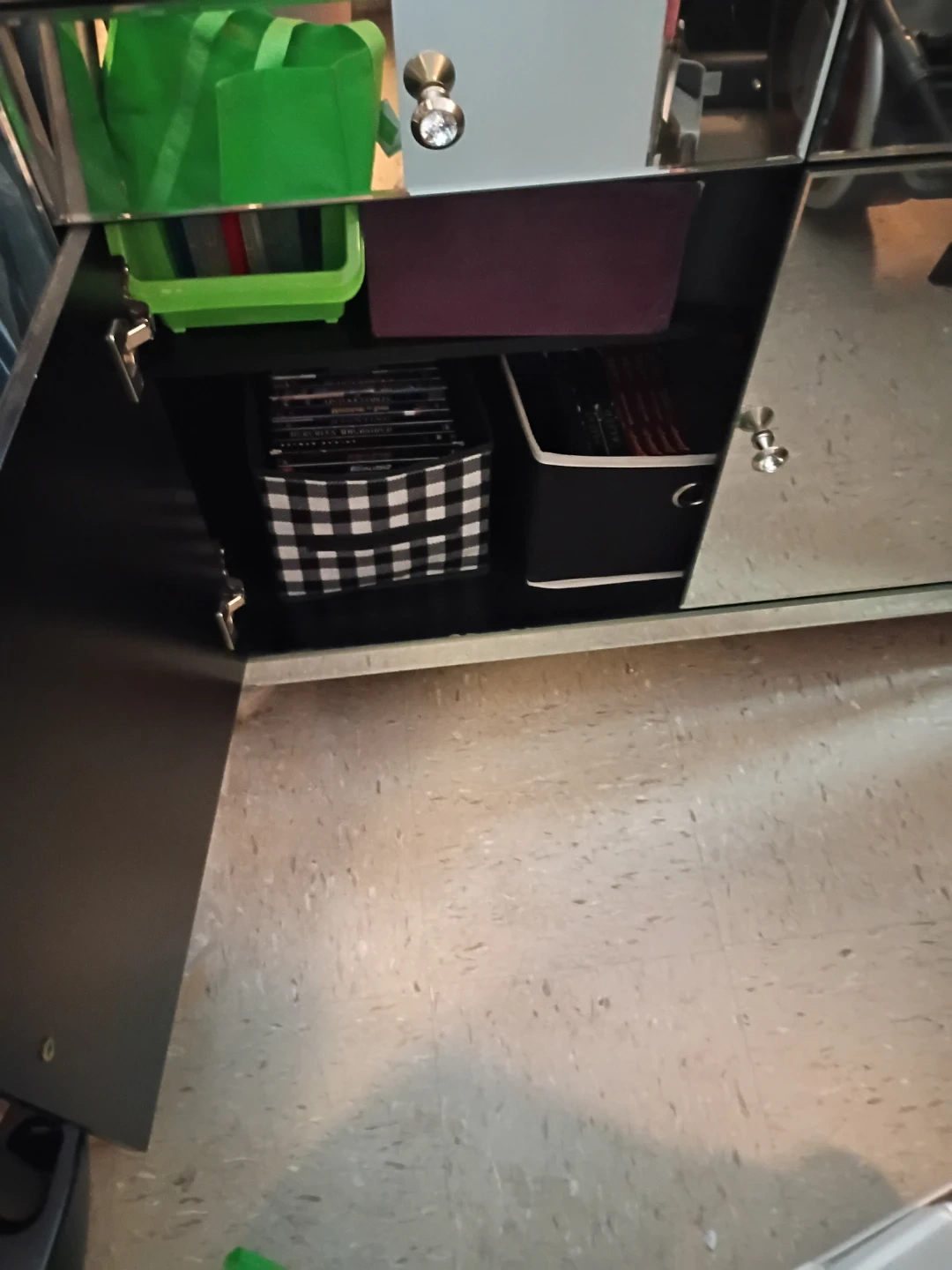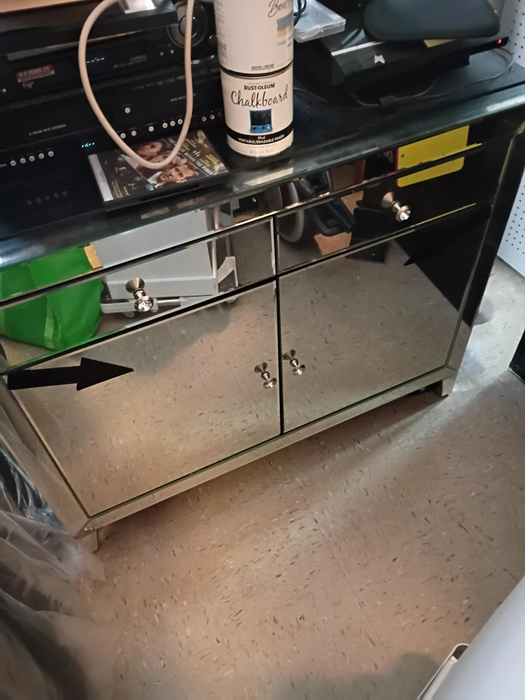 You see on the mirrored doors I put there yes it has cracks but the arrows cover it very well and it's a trend these arrows. Again it's fine I'm selling it because need the space. I just bought these tall cabinet wall units that took up a lot of space and need to send this here mirrored cabinet to a good home. The drawers are fine they roll really nice the are in tact and the doors also they have ample space and you can put a TV on it. Or just use it as a cabinet. The parts that I could not hide I highlited it with a white circle and a white arrow. I was going to add shiny black contact paper but I could not bend due to my accident a long time ago. But yes great idea.