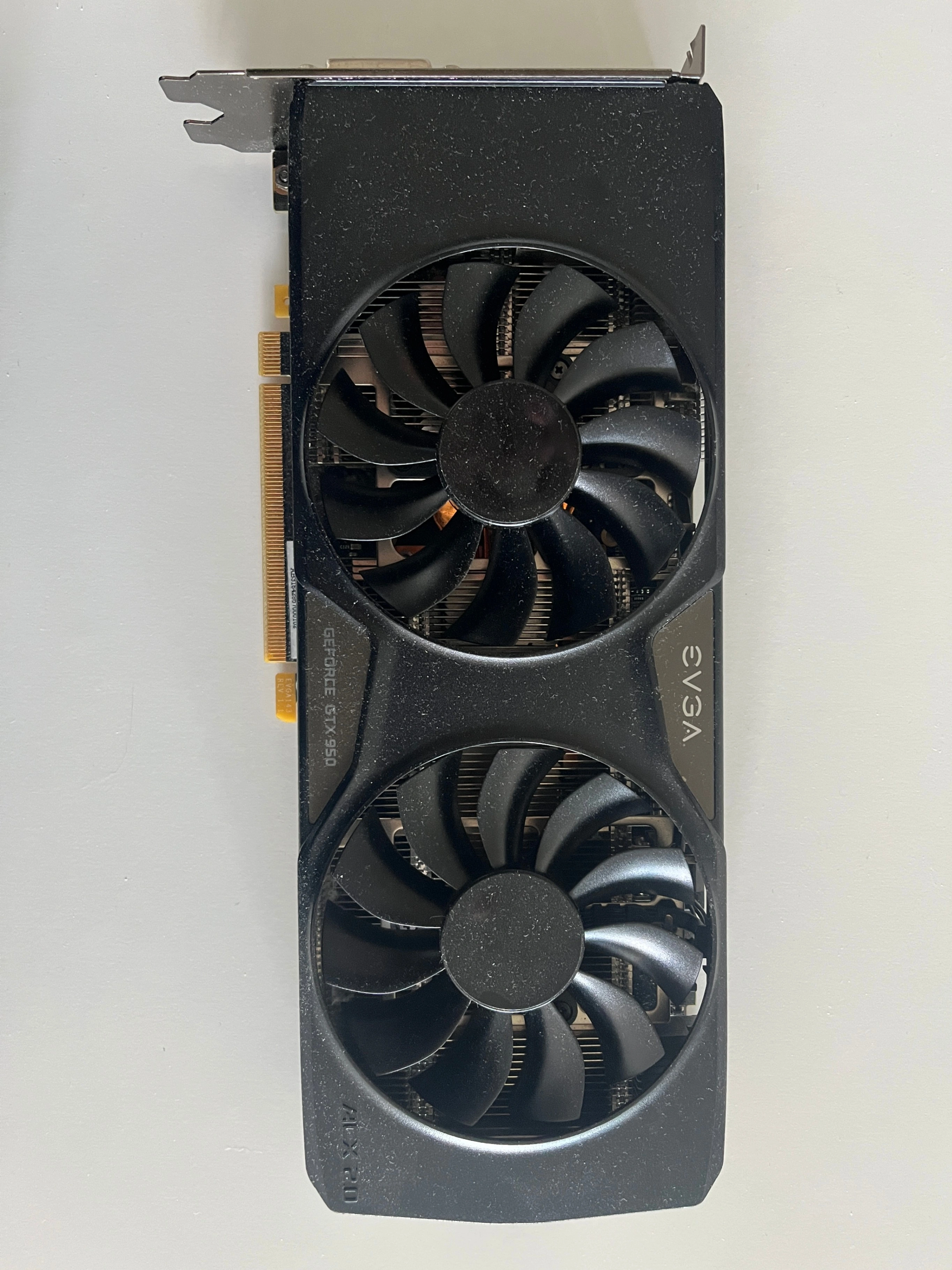 EVGA GTX 950 graphics card. Used, in good working condition. 2GB GDDR5, dual-fan cooling, supports DirectX 12. Good entry-level GPU for older builds or light gaming.