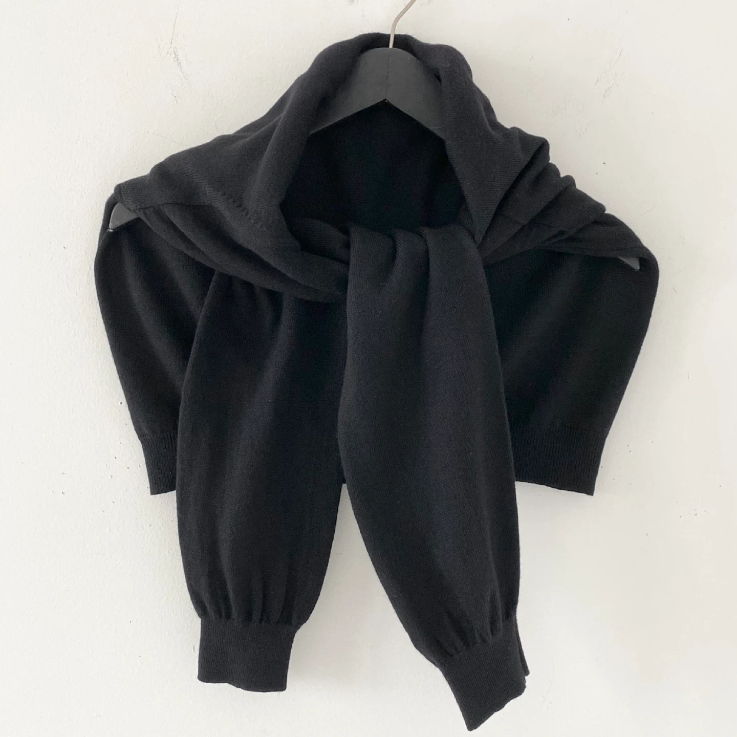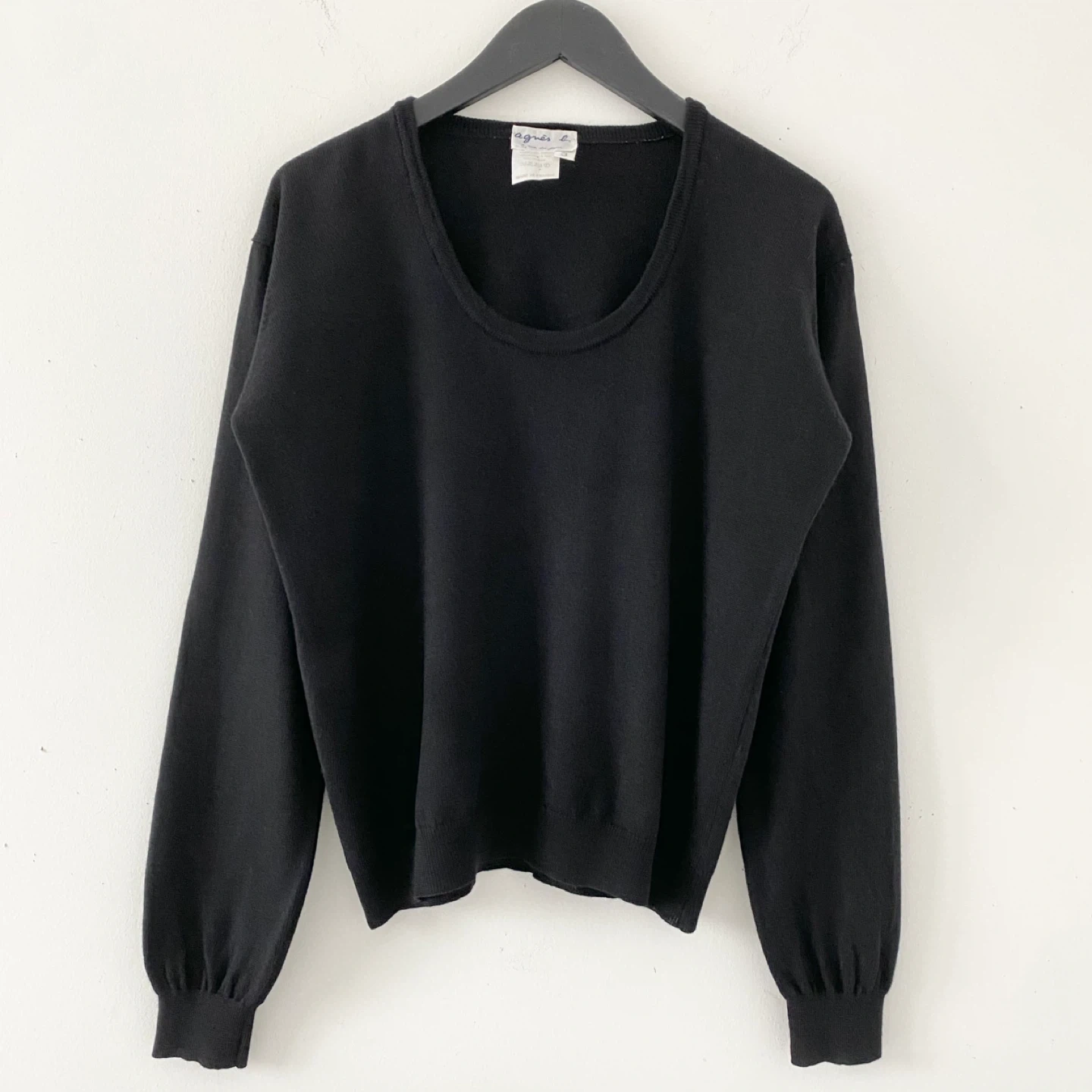 Y2K Agnes b. scoop neck sweater. Made of lightweight 100% cashmere in a rich black colour. I don't find it itchy but it's subjective. Love wrapping it around the neck or draping it over the shoulder. There's some minor general wear but no staining or damage. It's clean and in excellent condition.