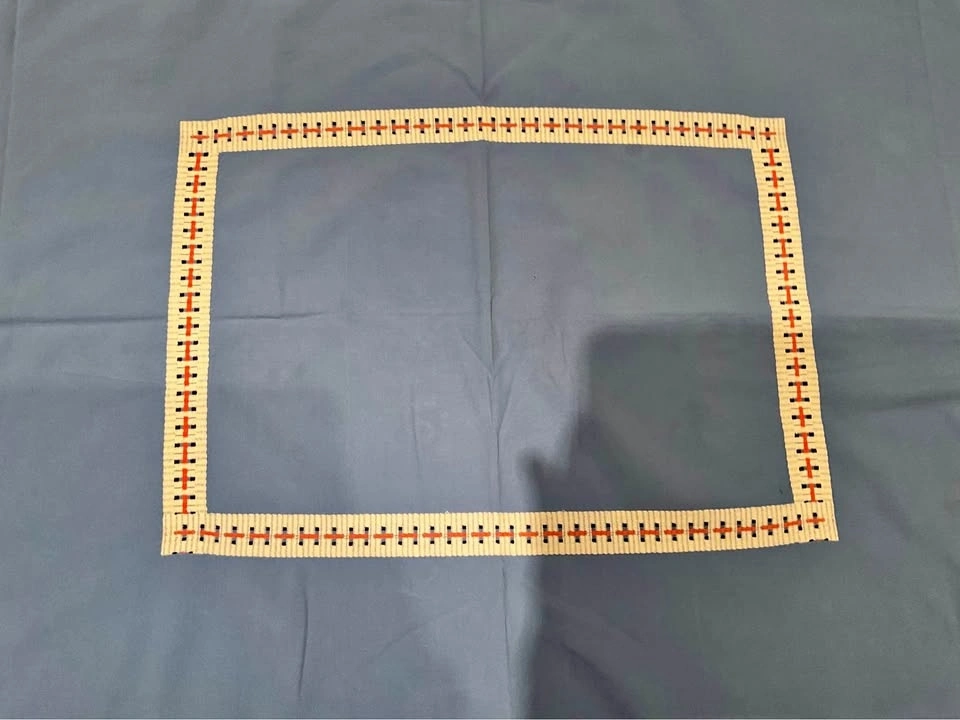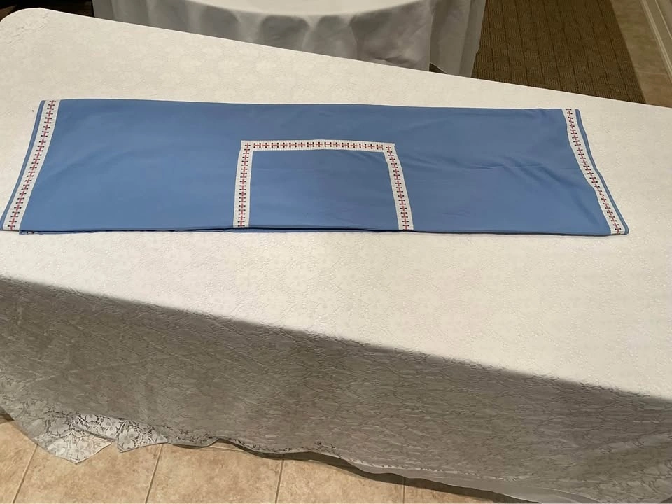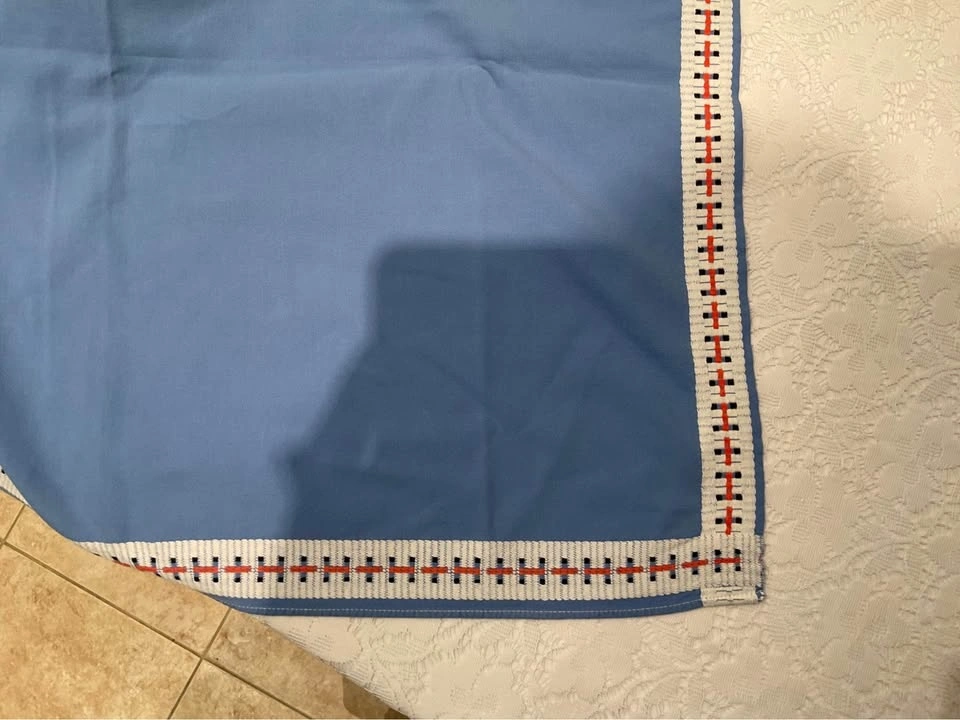 Vintage blue and red check border tablecloth. Very thick good cotton! It is beautiful, they do NOT make them like this anymore! 46 1/2 " x 45 ". Excellent Condition - Smoke & Pet Free Home. Cash Only - Richmond Hill - Bathurst & King Road.