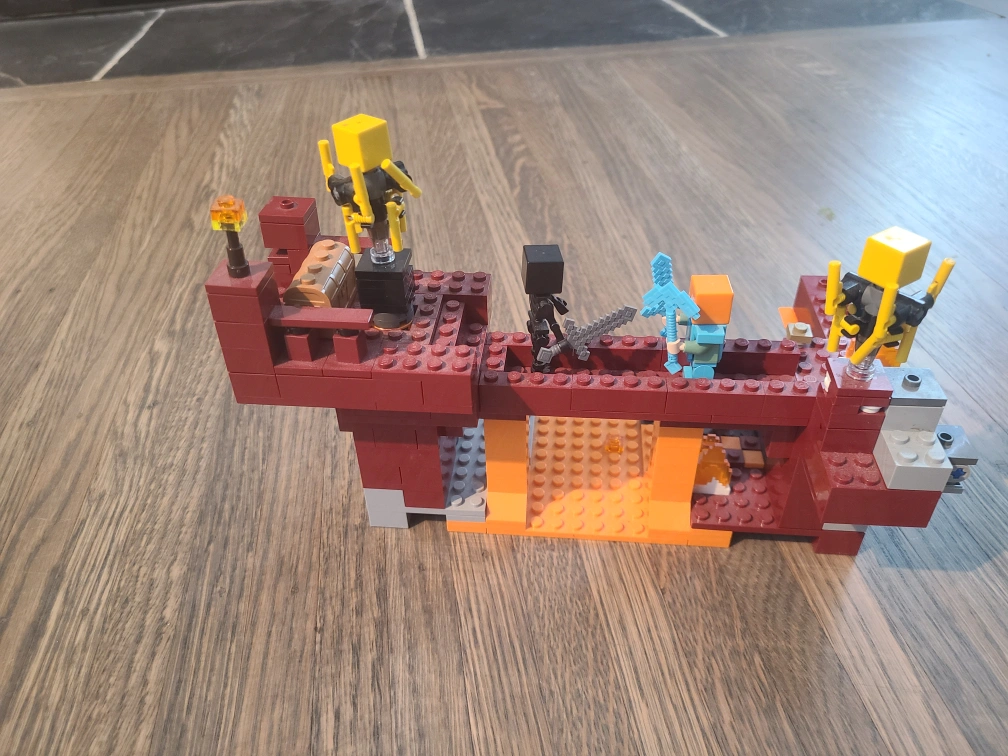 Selling a LEGO Minecraft set, The Nether Fortress (21184)! This set is great for Minecraft fans and LEGO enthusiasts alike. It looks like it's been assembled and is ready for a new home. Hours of fun!