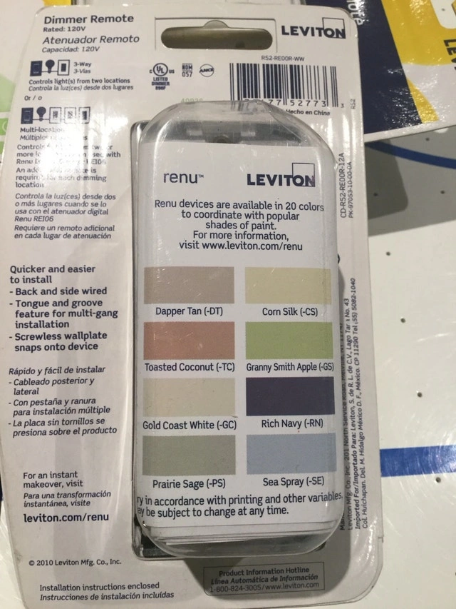 Leviton Light Switch Dimmer RE00R and VP00R-1LX