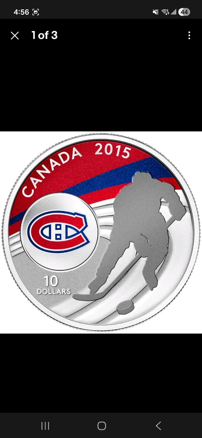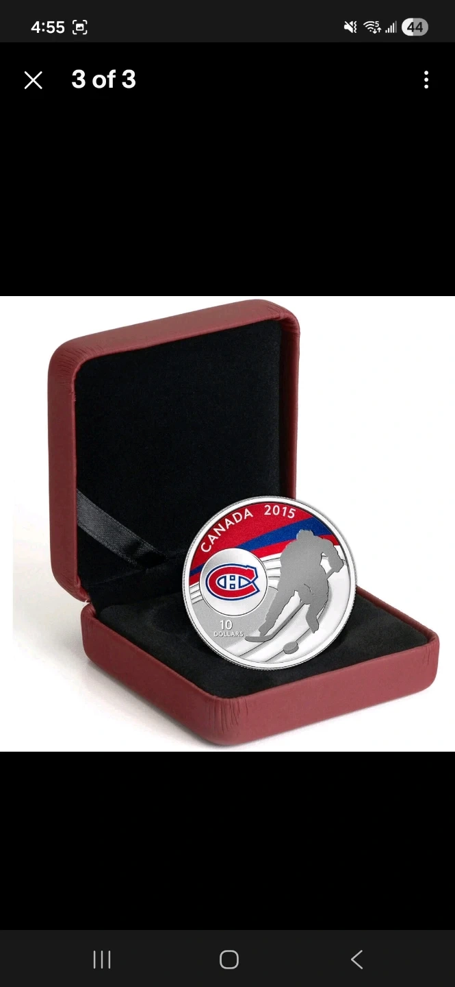 Commemorative coin from Canada dated 2015 featuring the Montreal Canadiens logo. It's a 10 dollar denomination coin. Comes in a display box. .999 fine silver