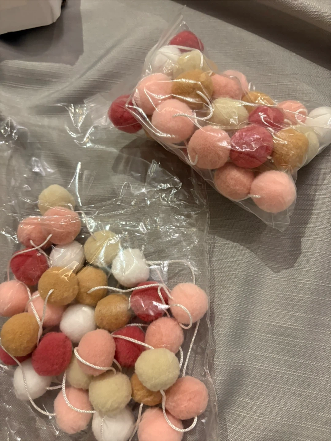 This set includes three felt ball garlands, each with colorful balls. They come in 4 pastel colours. These garlands are perfect for adding a festive touch to any room or event!