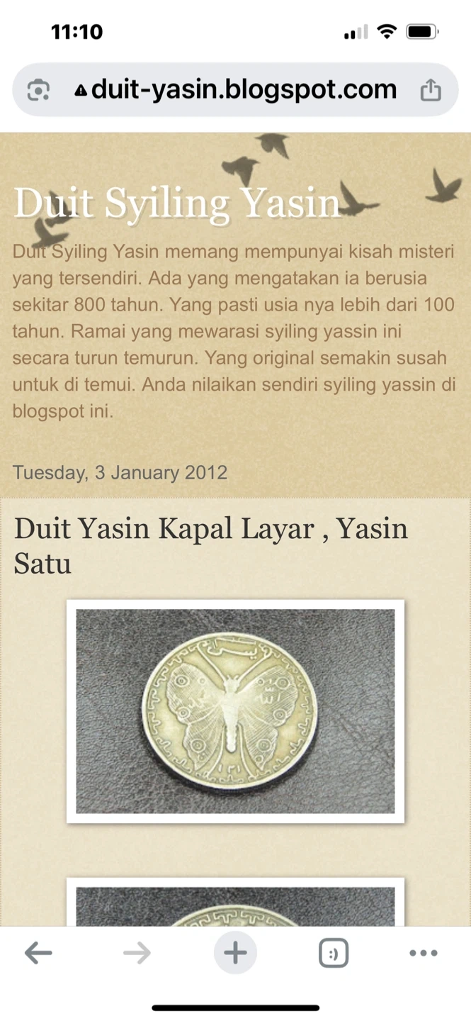 Vintage Yasin Coin with Butterfly and Ship Designs