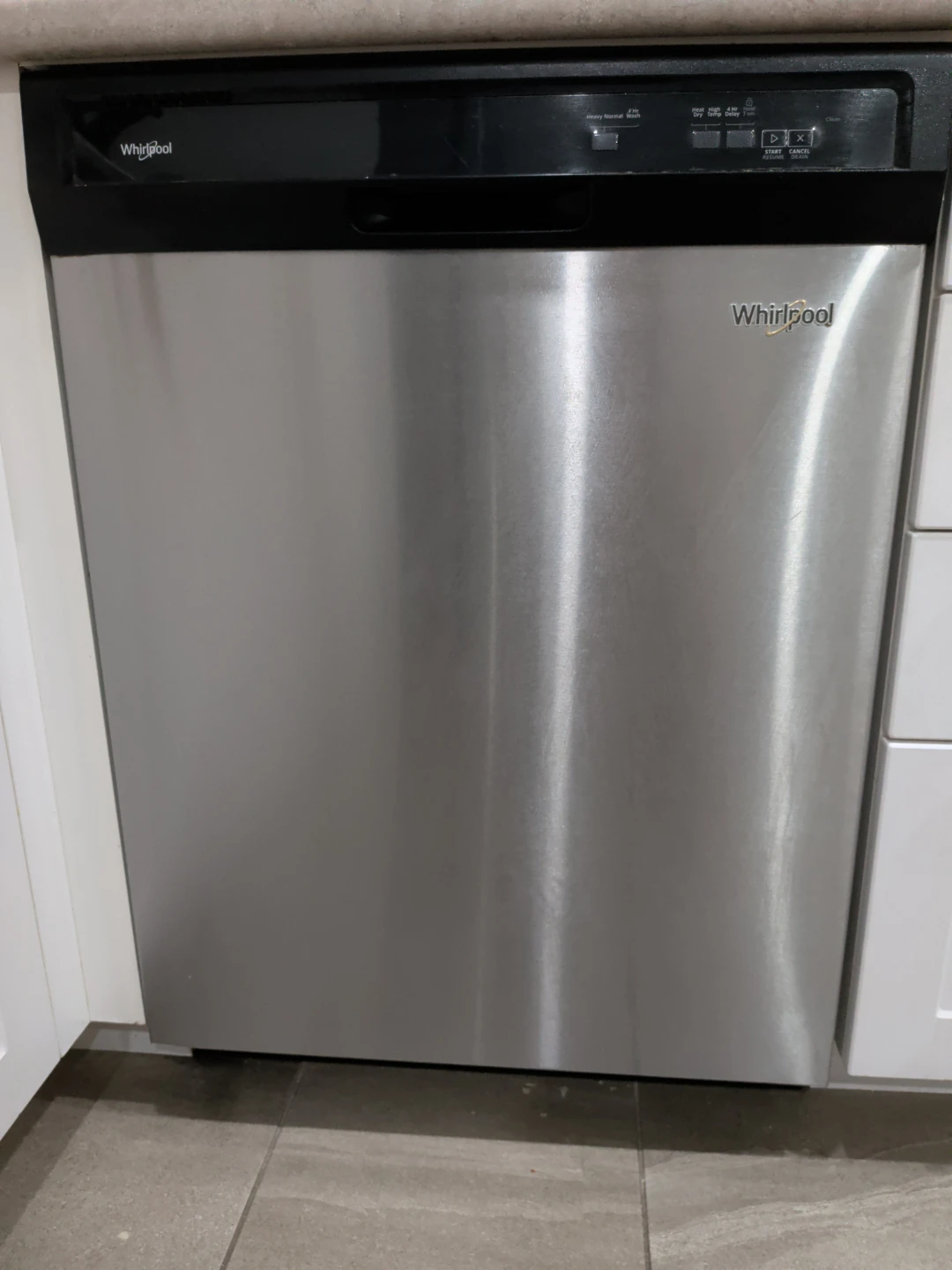 Selling a Whirlpool dishwasher in stainless steel! It's in great condition and ready to help with your kitchen cleanup. It has two racks inside for all your dishes and cutlery