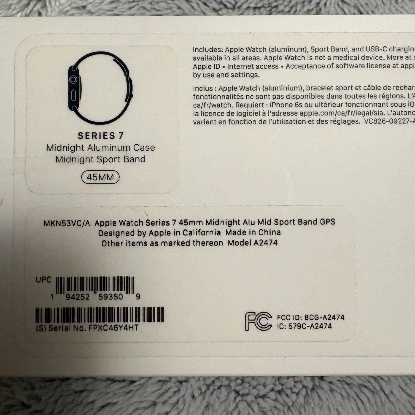 Selling an Apple Watch Series 7 (GPS) with a 45mm Midnight Aluminum case and Midnight Sport Band