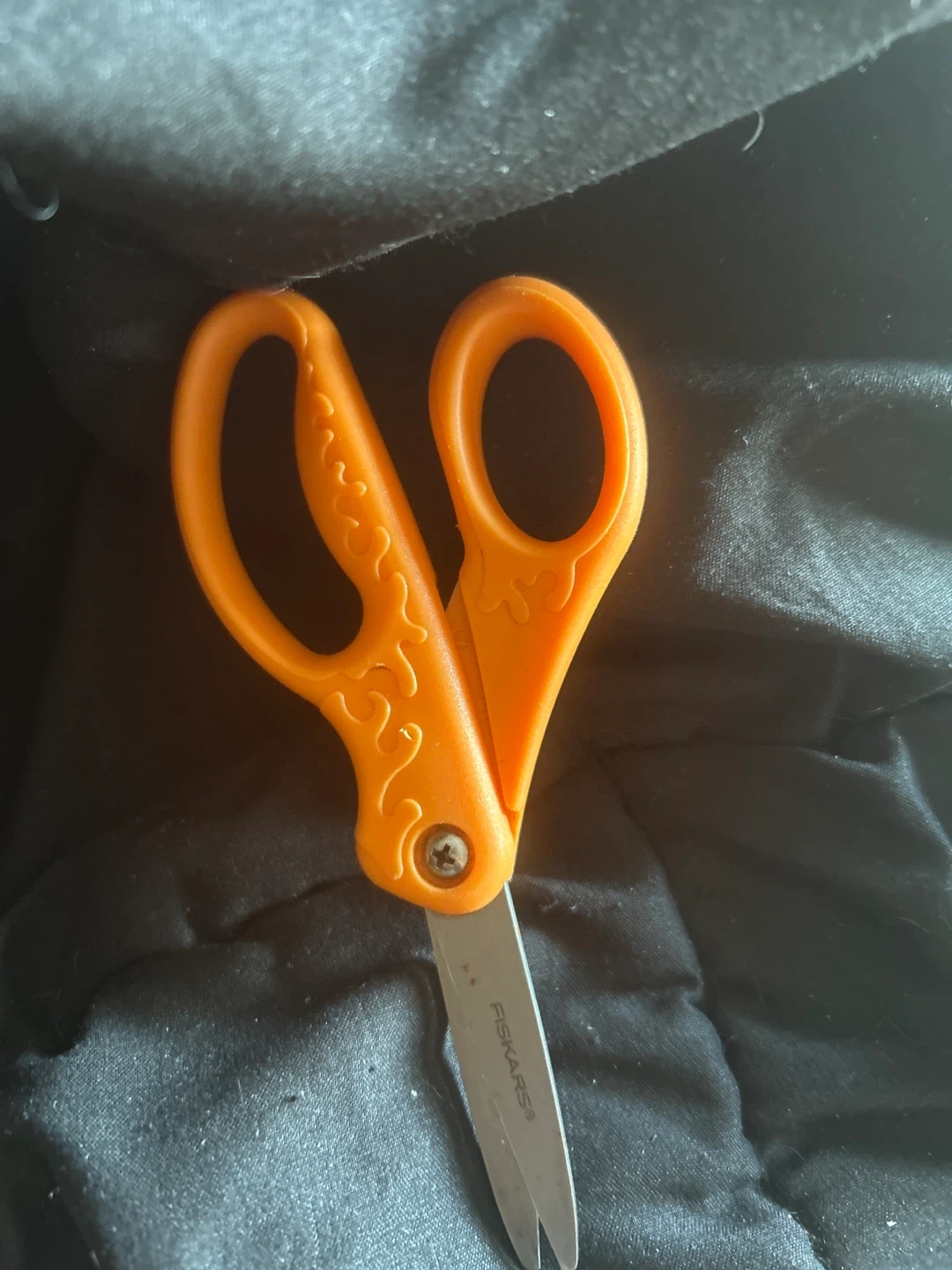 I have way too many scissors. Please feel free to grab these. These are orange-handled Fiskars scissors. The blades are made of metal. They're perfect for crafting or everyday cutting tasks!