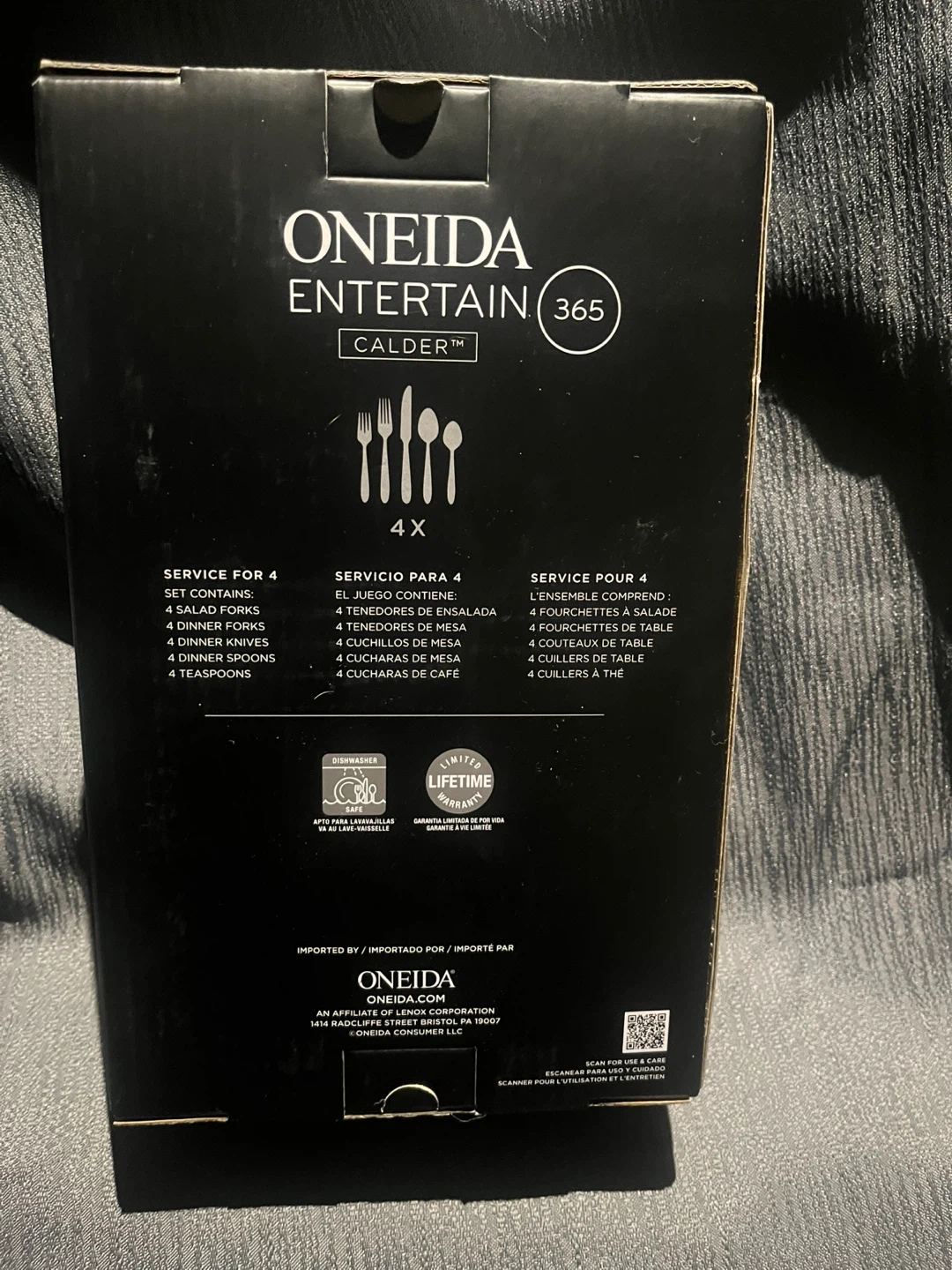 Another great mystery box. Fine price to sell! This 20-piece flatware set serves four people. It's made of 18/0 stainless steel and is dishwasher safe. It includes 4 dinner forks, 4 dinner knives, 4 dinner spoons, and 4 teaspoons.