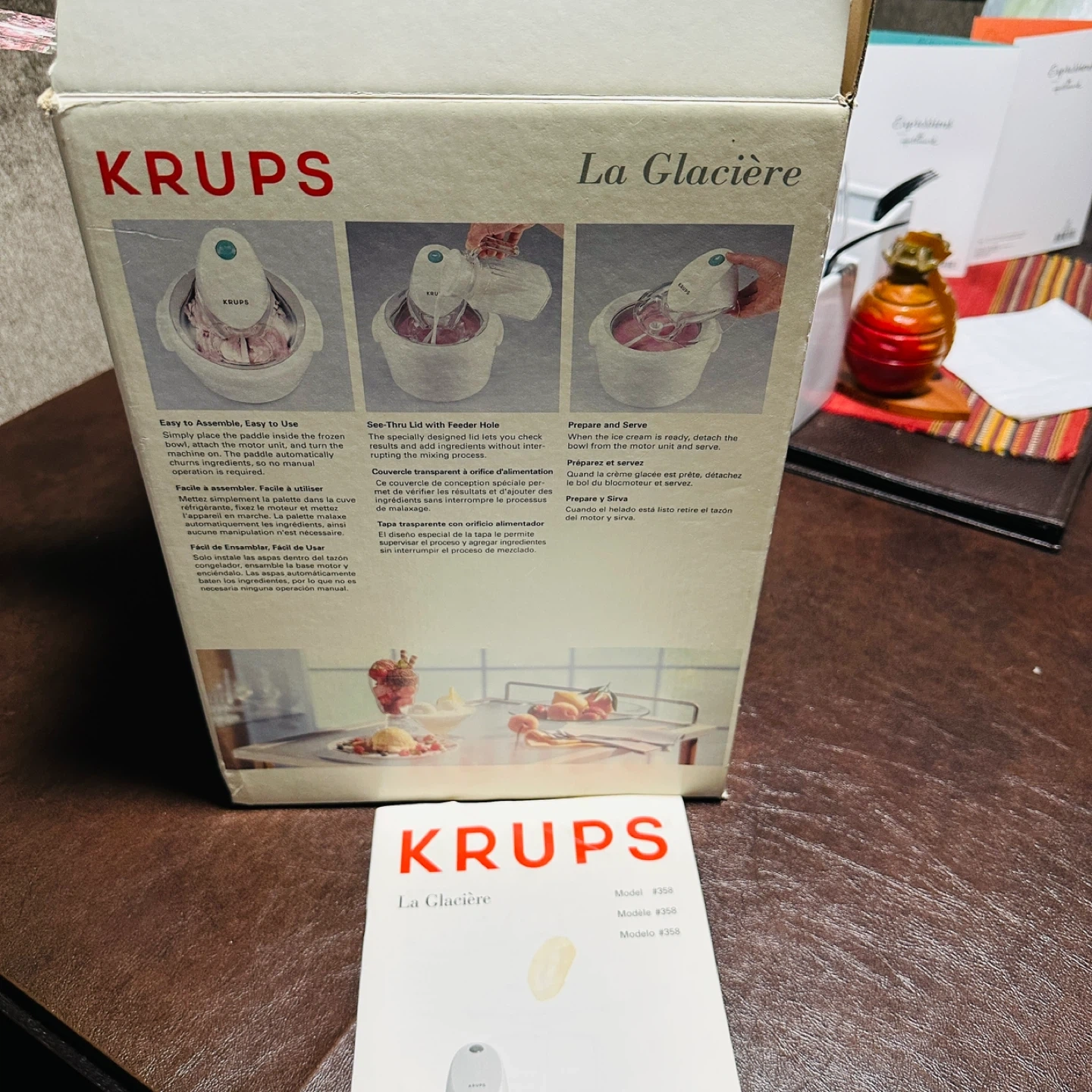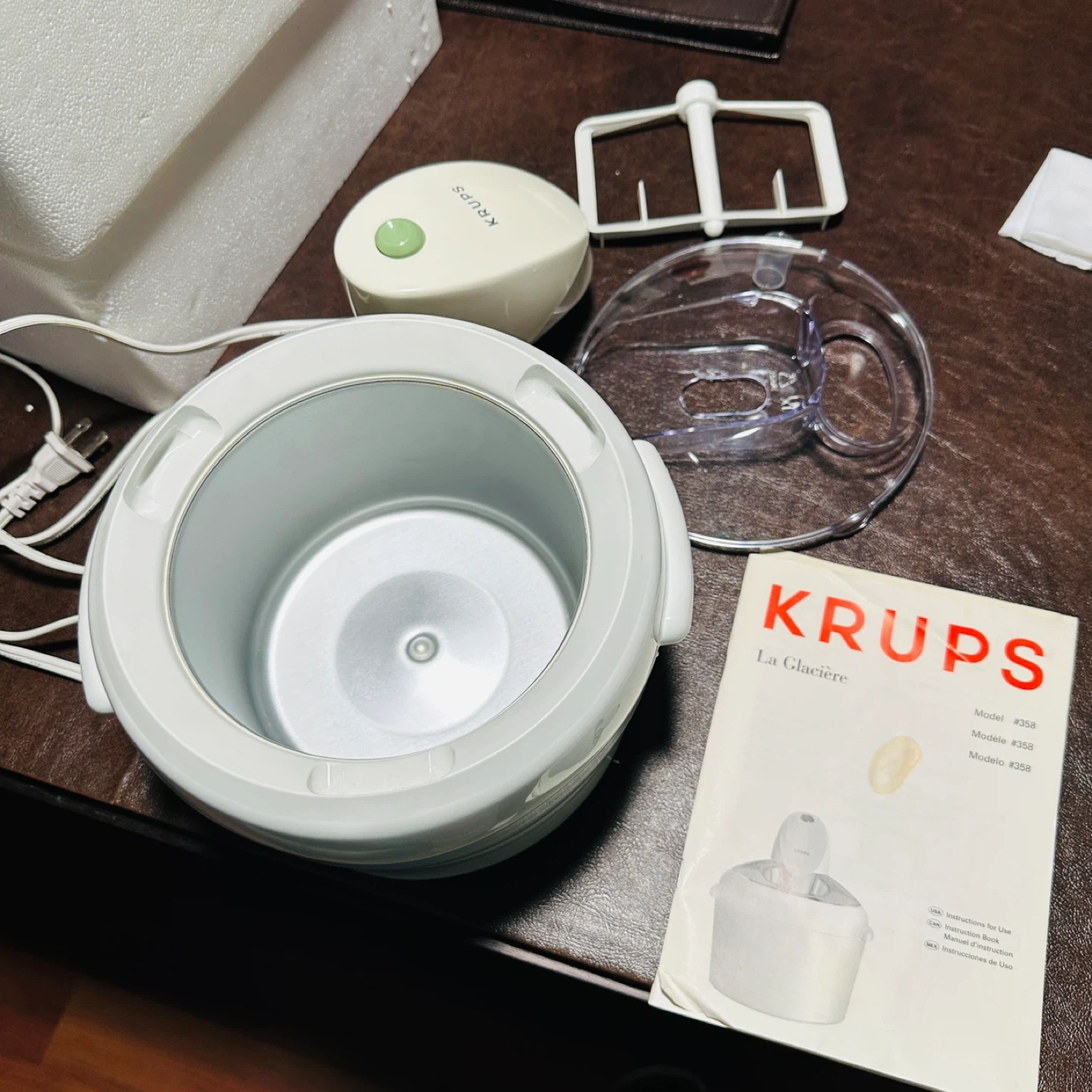 This Krups ice cream maker, model 258, is designed for making delicious frozen desserts. It's easy to assemble and use, with dishwasher-safe parts for quick cleanup. Create a variety of ice creams, sorbets, and frozen yogurts at home!