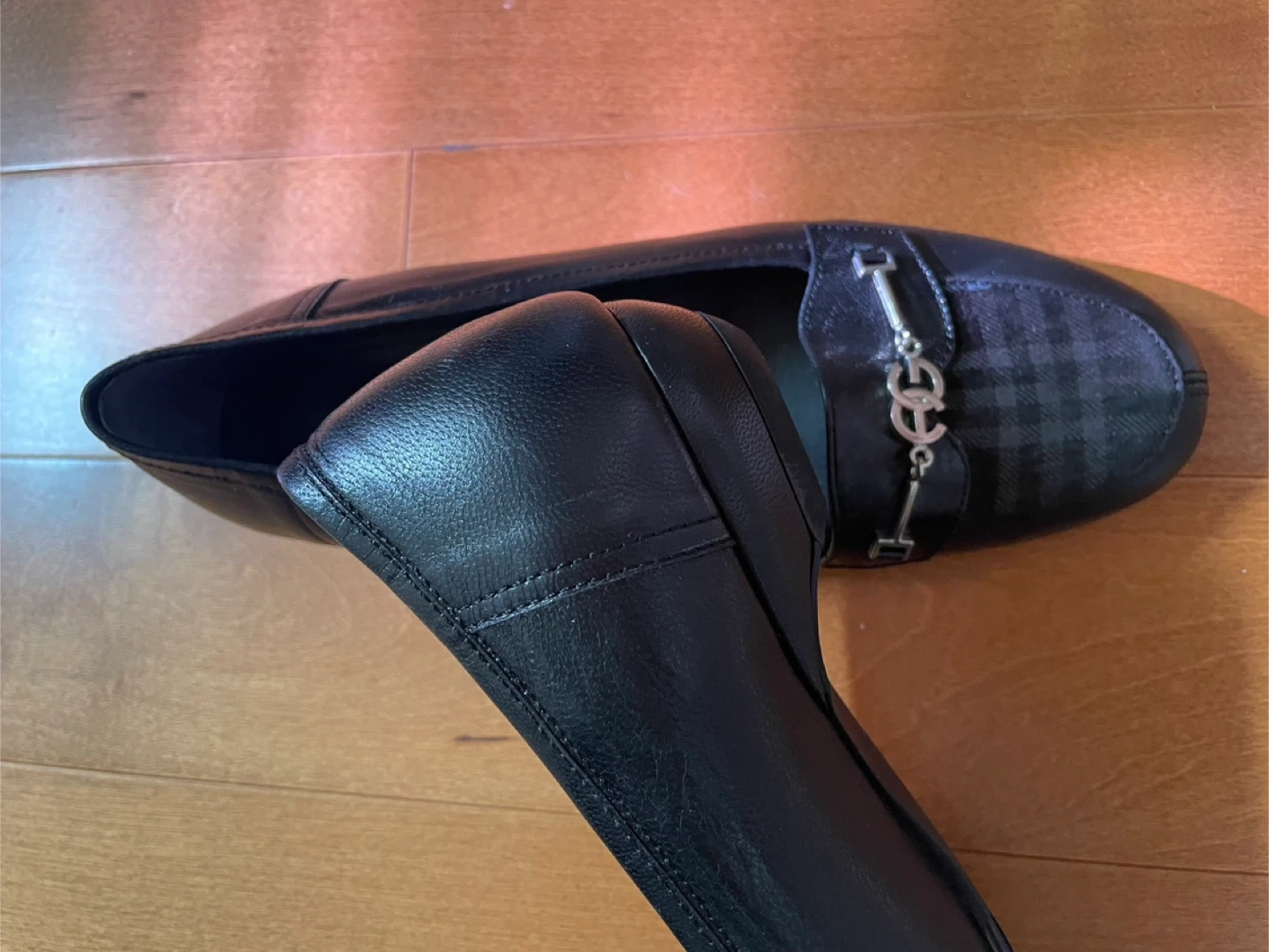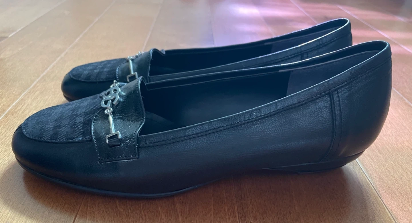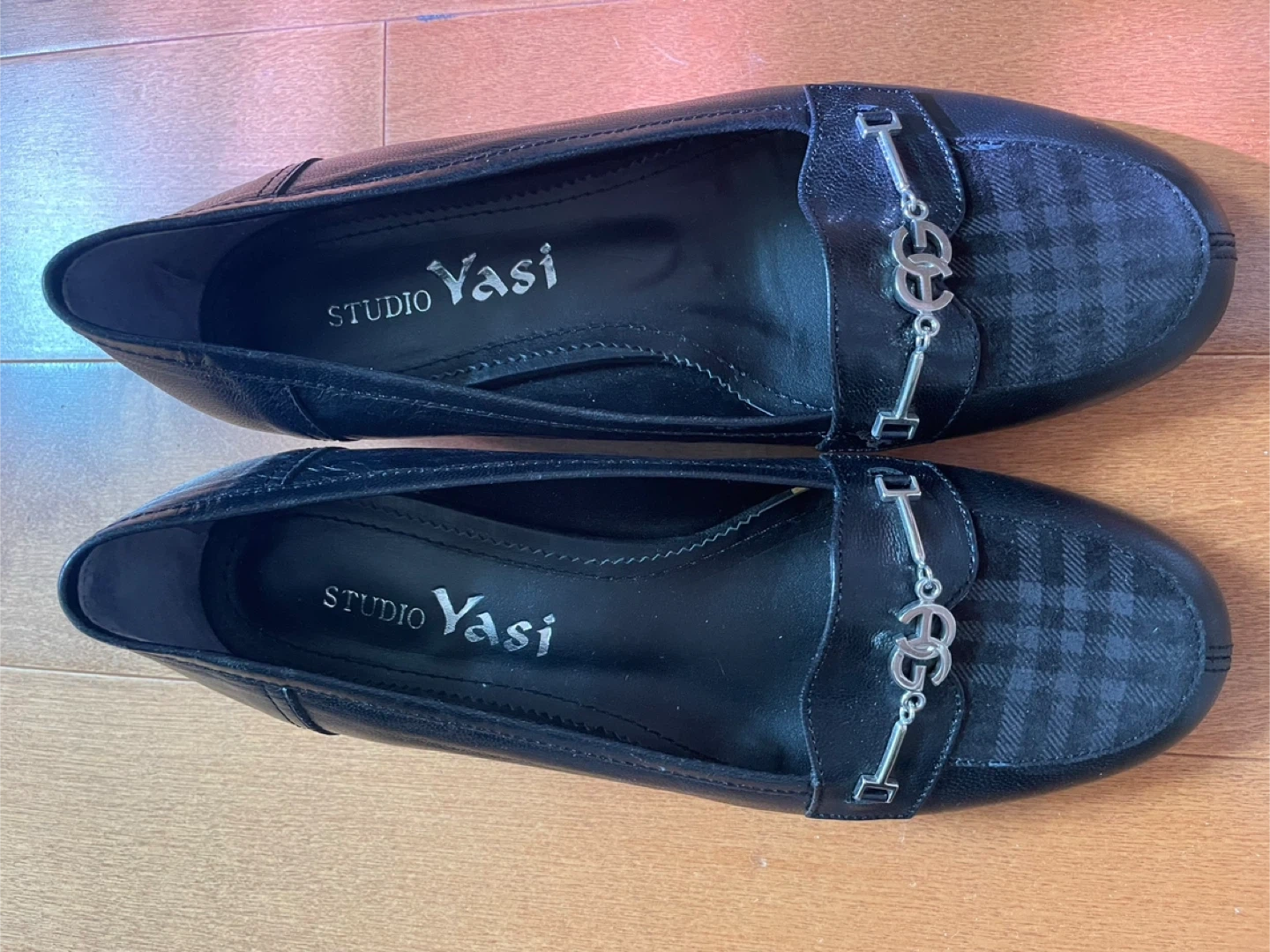 Brand New! These are a pair of Studio Yasi black leather loafers. They are in great condition and are size 5.5 or 225. The shoes have a decorative metal accent on the front and a subtle plaid pattern on the toe. Perfect for everyday wear!
