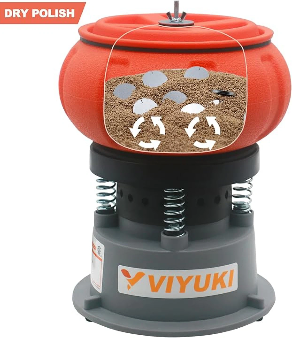 Looking to polish rocks, stones, coins, or jewelry? This Viyuki vibratory tumbler is perfect for the job! It has a 5lb capacity and is brand new. It measures 12.2 inches in height.
