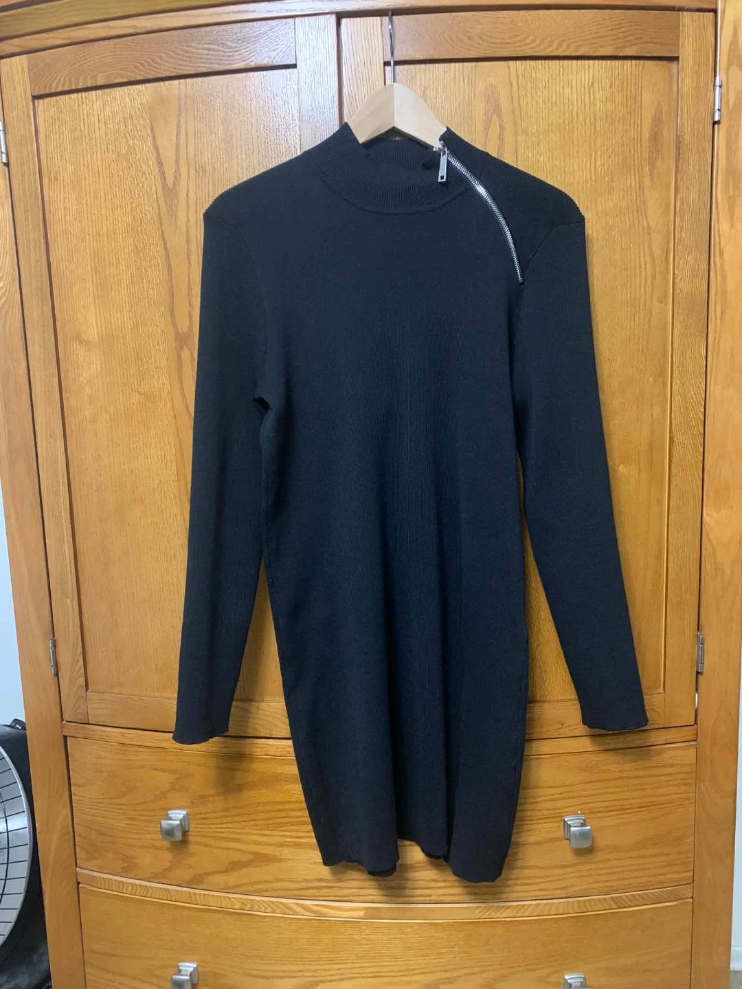 Cable & Gauge Black Knit Dress with Zipper Detail