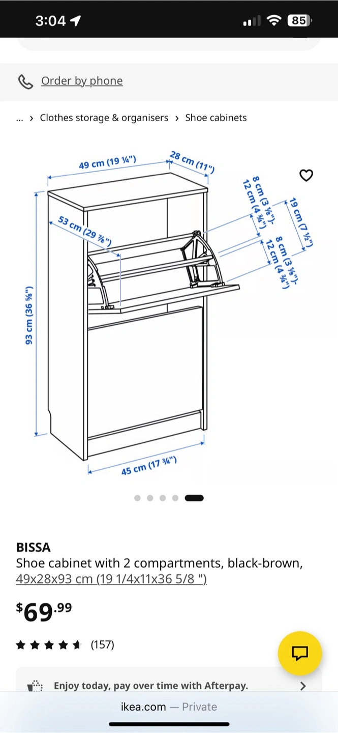 This IKEA BISSA shoe cabinet has two compartments for storage. It measures 49x28x93 cm. Keep your entryway tidy with this cabinet!