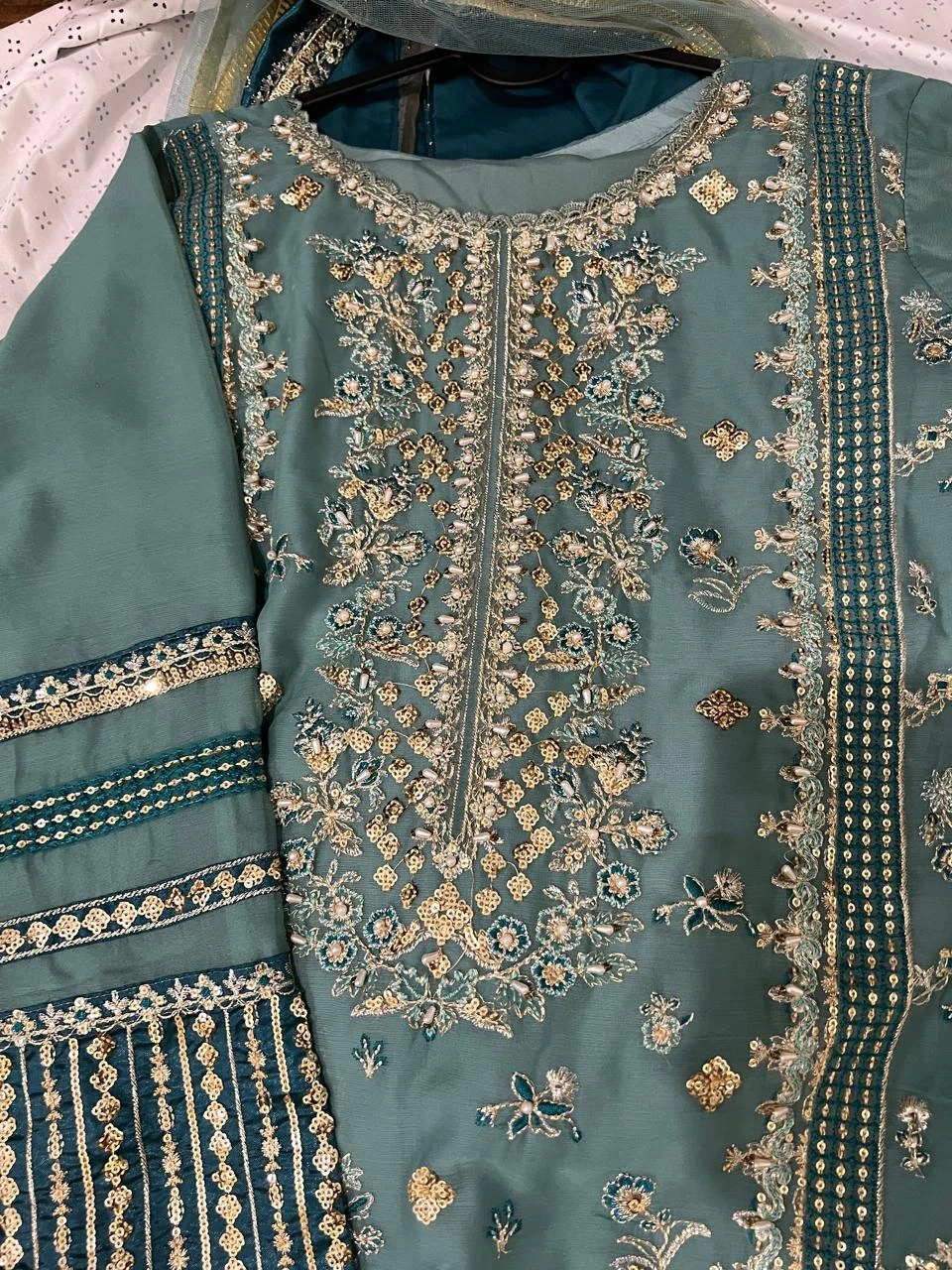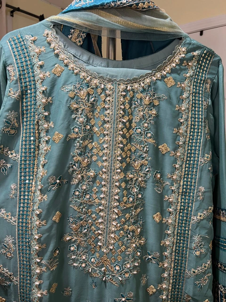 Beautifully designed 3 pcs suit with embroidery ,tilla ,sequences and pearl work