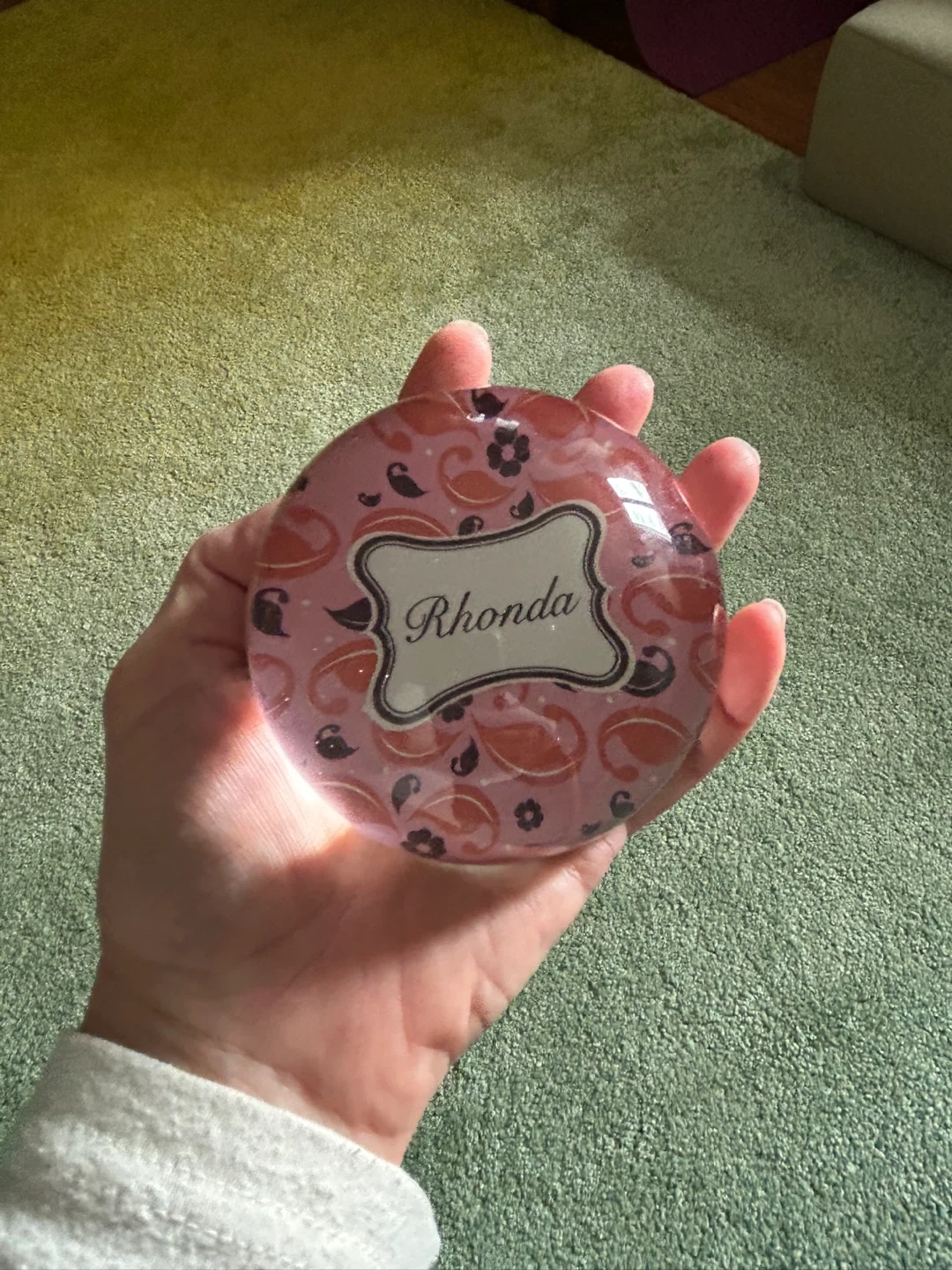 If your name is Rhonda and you have some papers that need weighted down, this is for you!