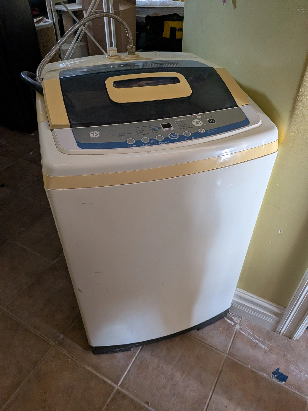 10Selling a used GE portable washer and dryer set. Perfect for small spaces or apartments! It's in good working condition (except the dryer has a squeak when it starts that goes away after a couple of minutes, but otherwise, works well and always dries in one cycle) and ready to go to a new home. Please note that there are some cosmetic signs of use.