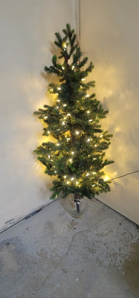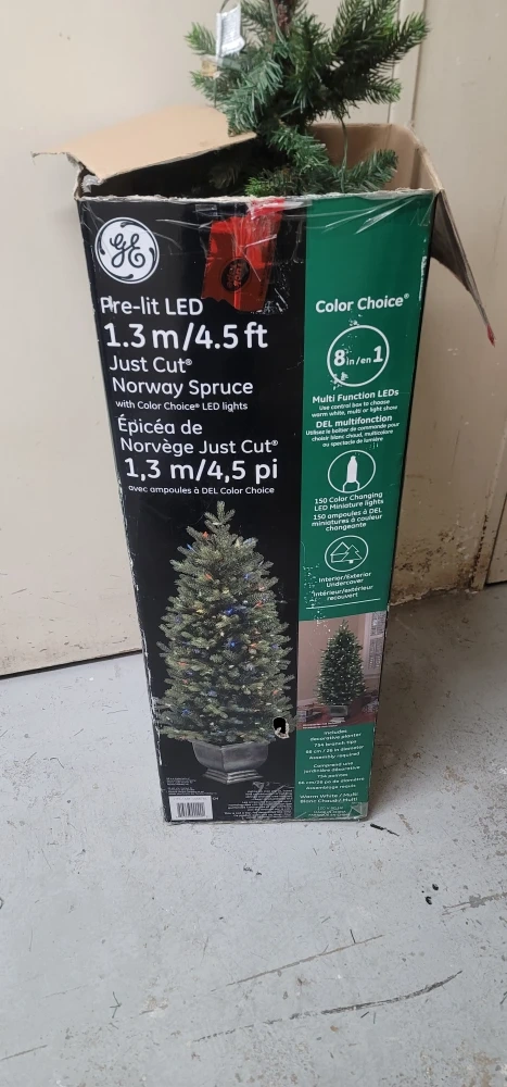 111Selling a pre-lit GE Norway Spruce Christmas tree! It stands at 4.5ft tall and comes with Color Choice LED lights. Includes the original box, making it easy to store after the holidays don't have base
