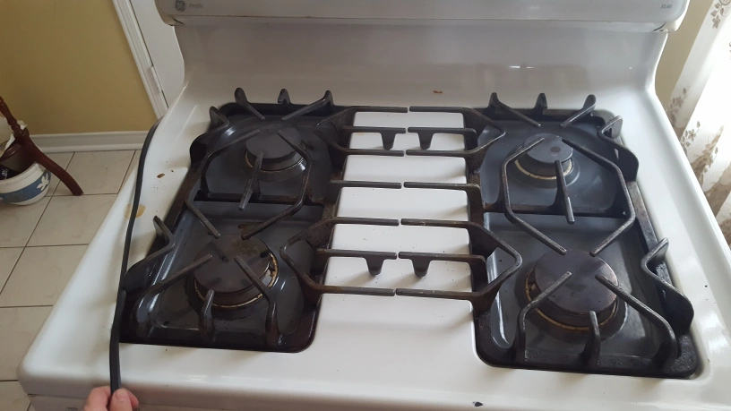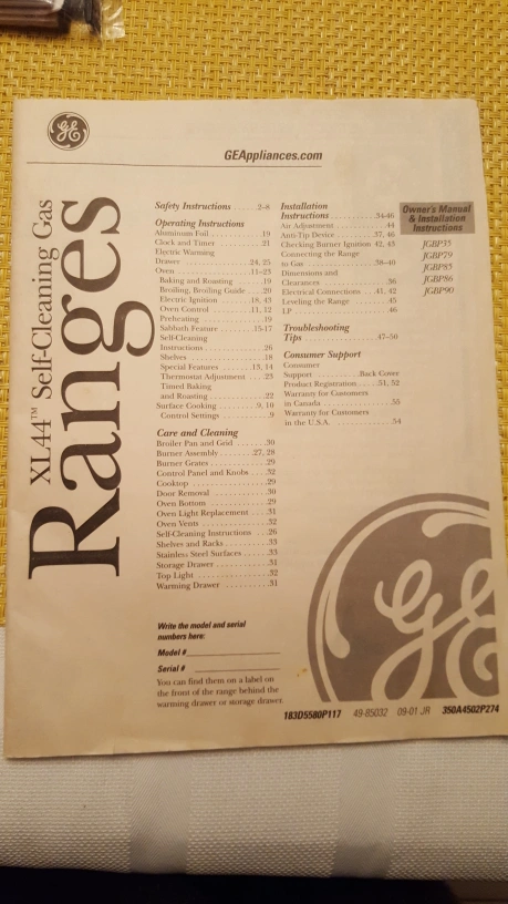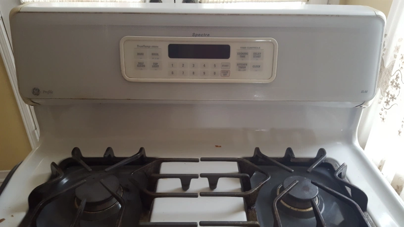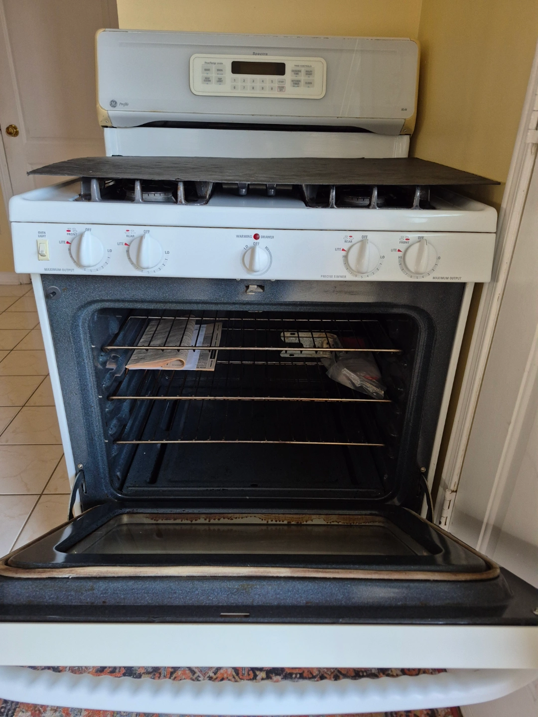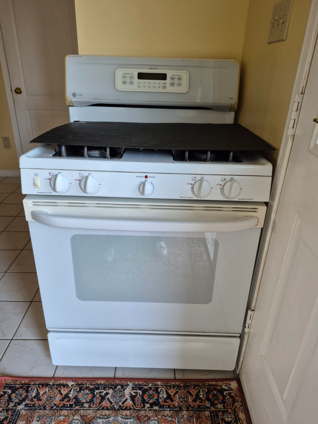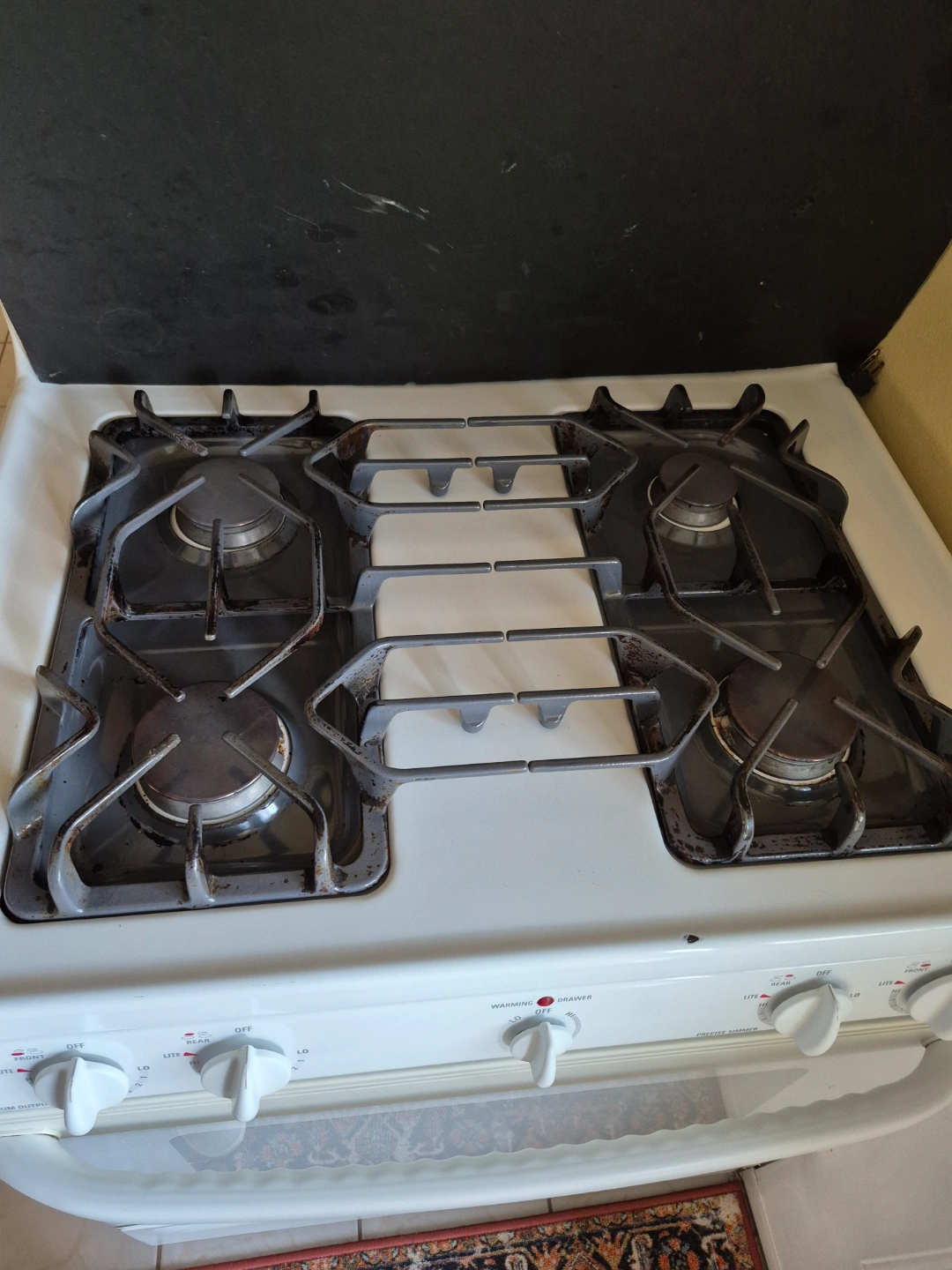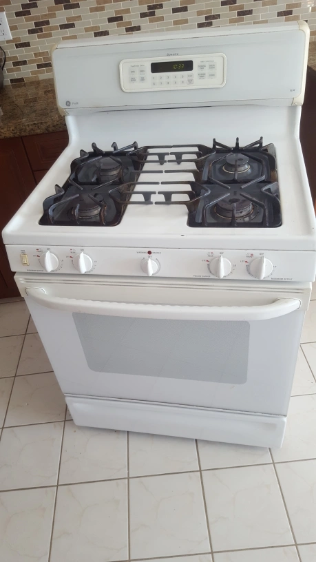 11White gas range, four burners, self-cleaning oven. pick up only Model number JGP5030SLSS.