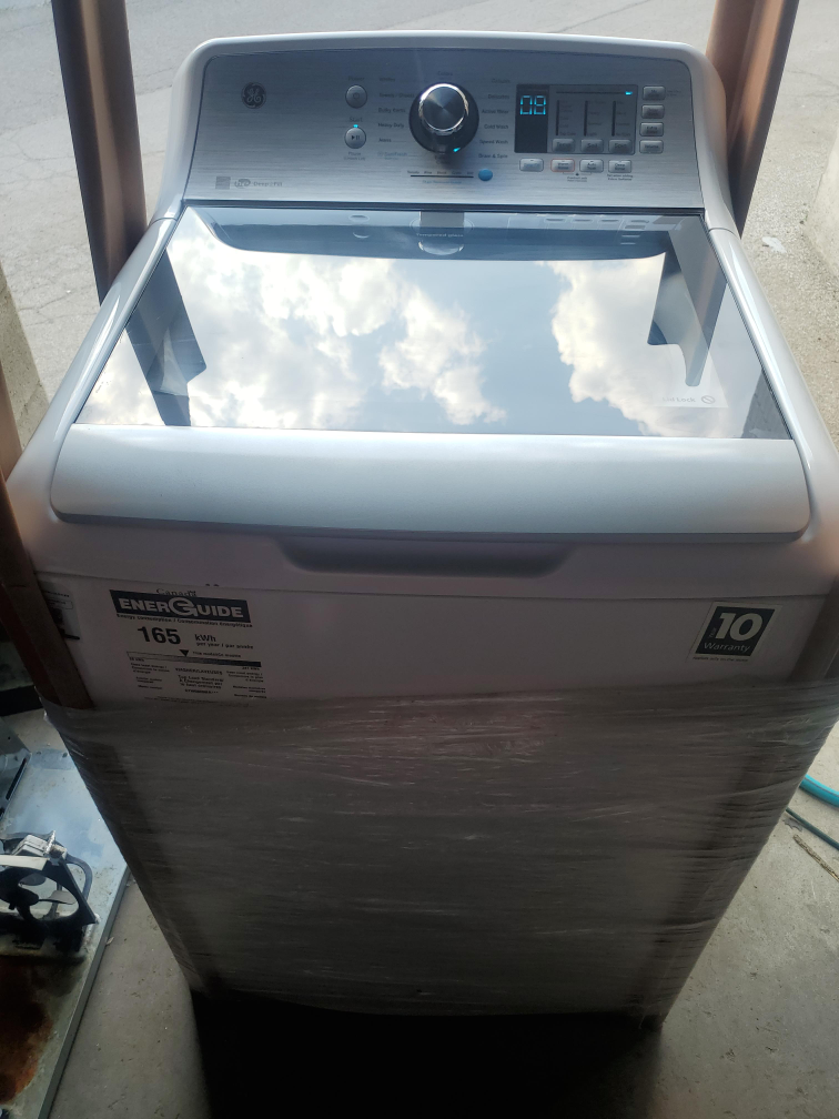 12Selling a GE top load washer. It has an Energy Guide label and a 10-year warranty.