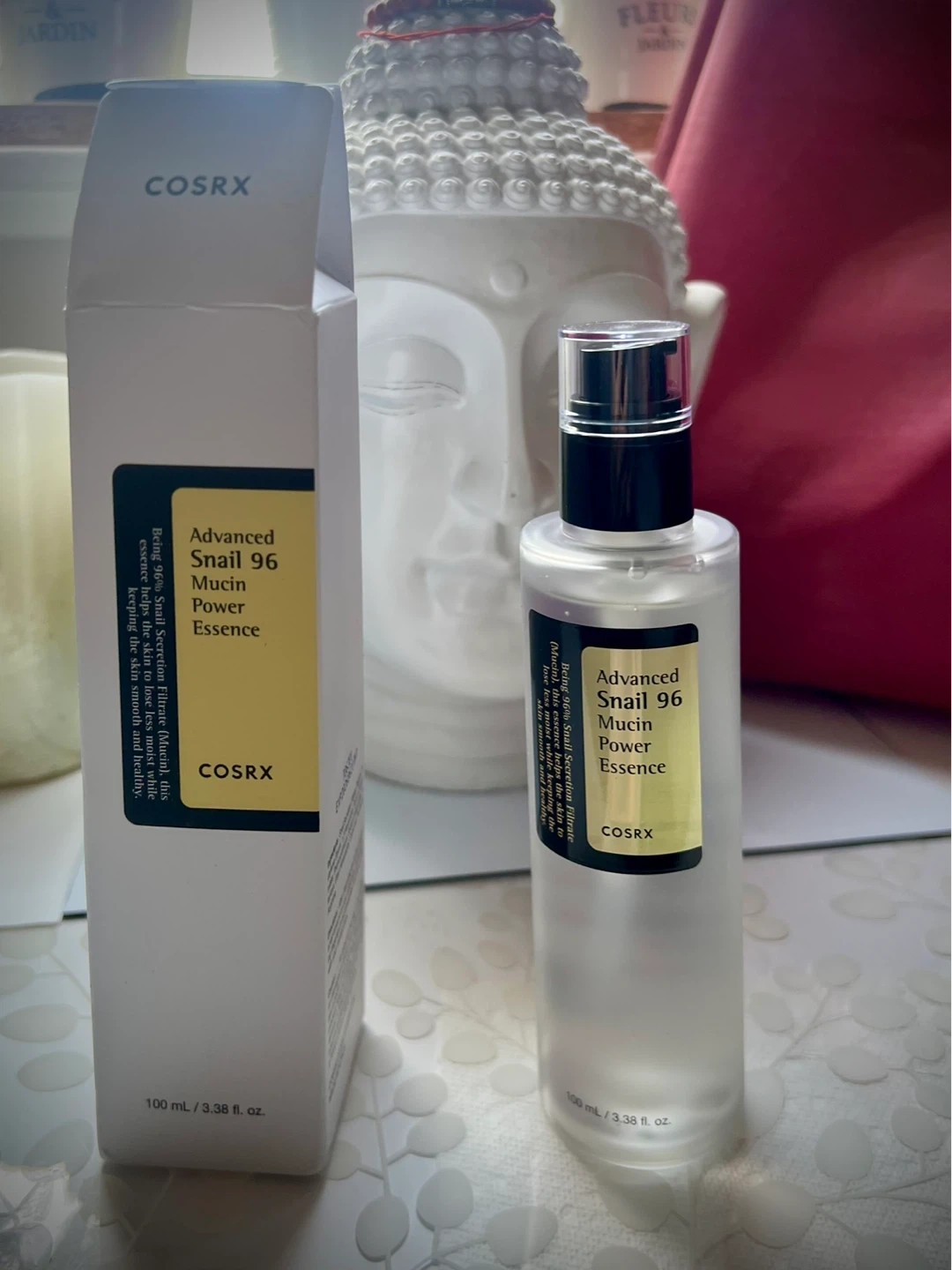 COSRX Advanced Snail 96 Mucin Power Essence. Contains 96% snail secretion filtrate. Helps skin become smoother and more radiant. 100ml bottle.
