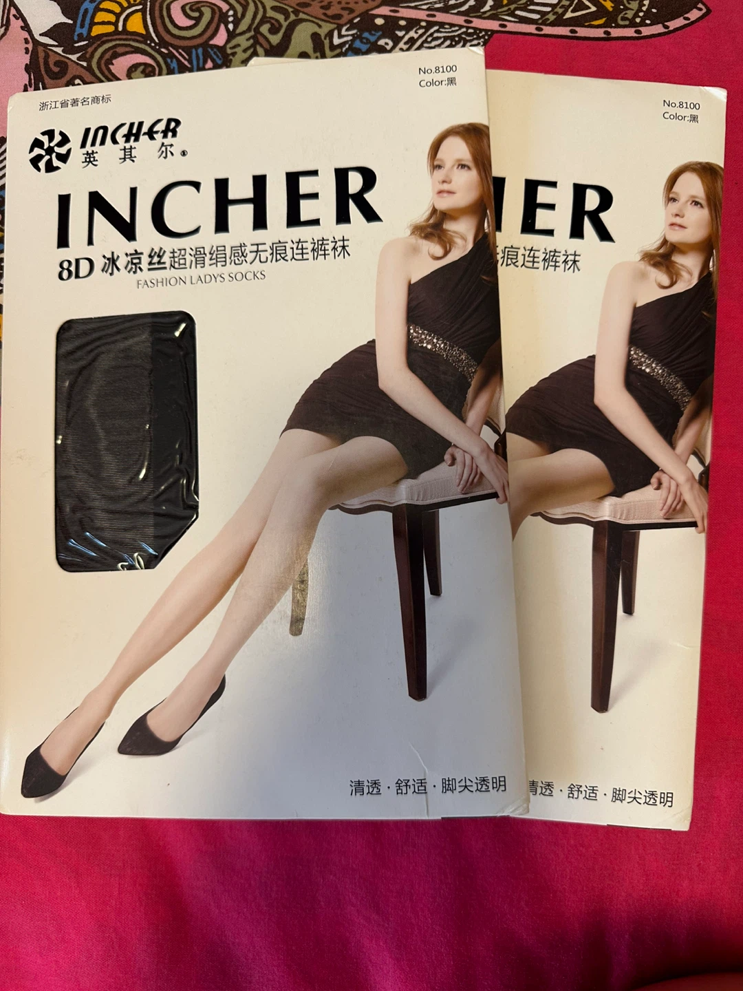 These are Incher brand 8D fashion ladies socks. They are designed for a smooth feel and a seamless look. The material is a blend, with 87.3% polyamide fibre, 10.7% spandex, and 2% cotton.