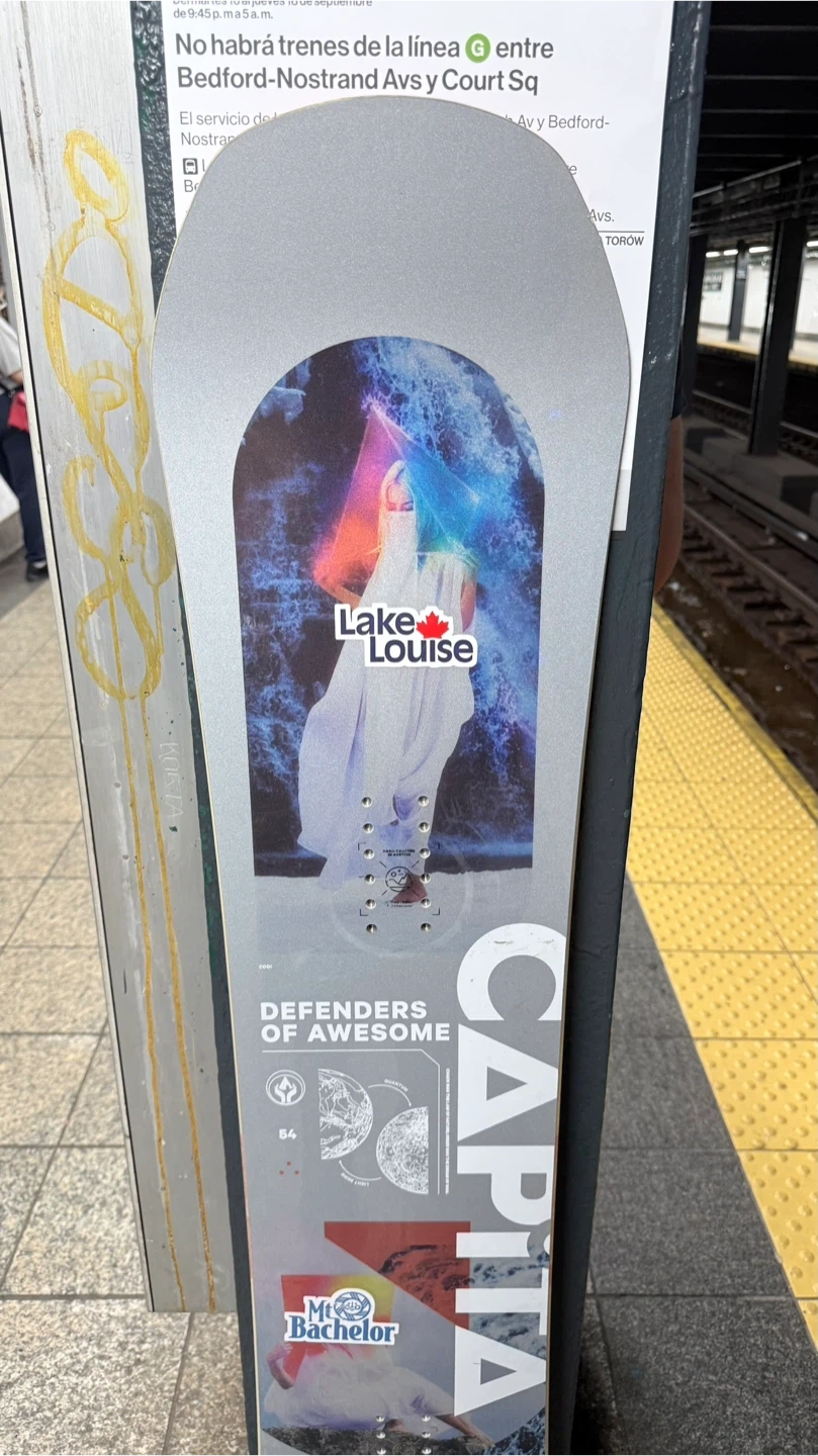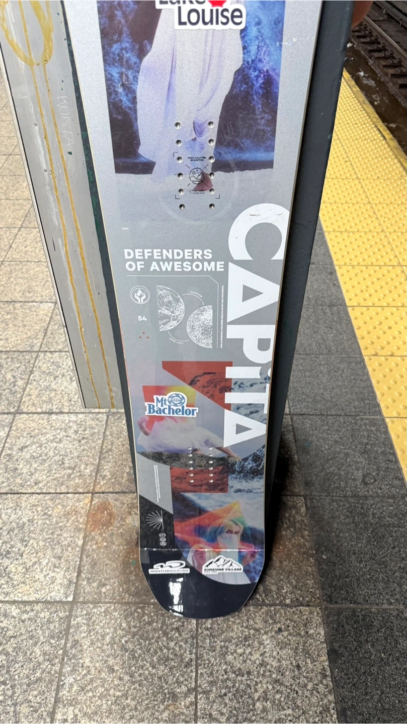 Selling a Capita Defenders of Awesome snowboard. It features a cool design with Lake Louise and Mt. Bachelor graphics. The size is 154.