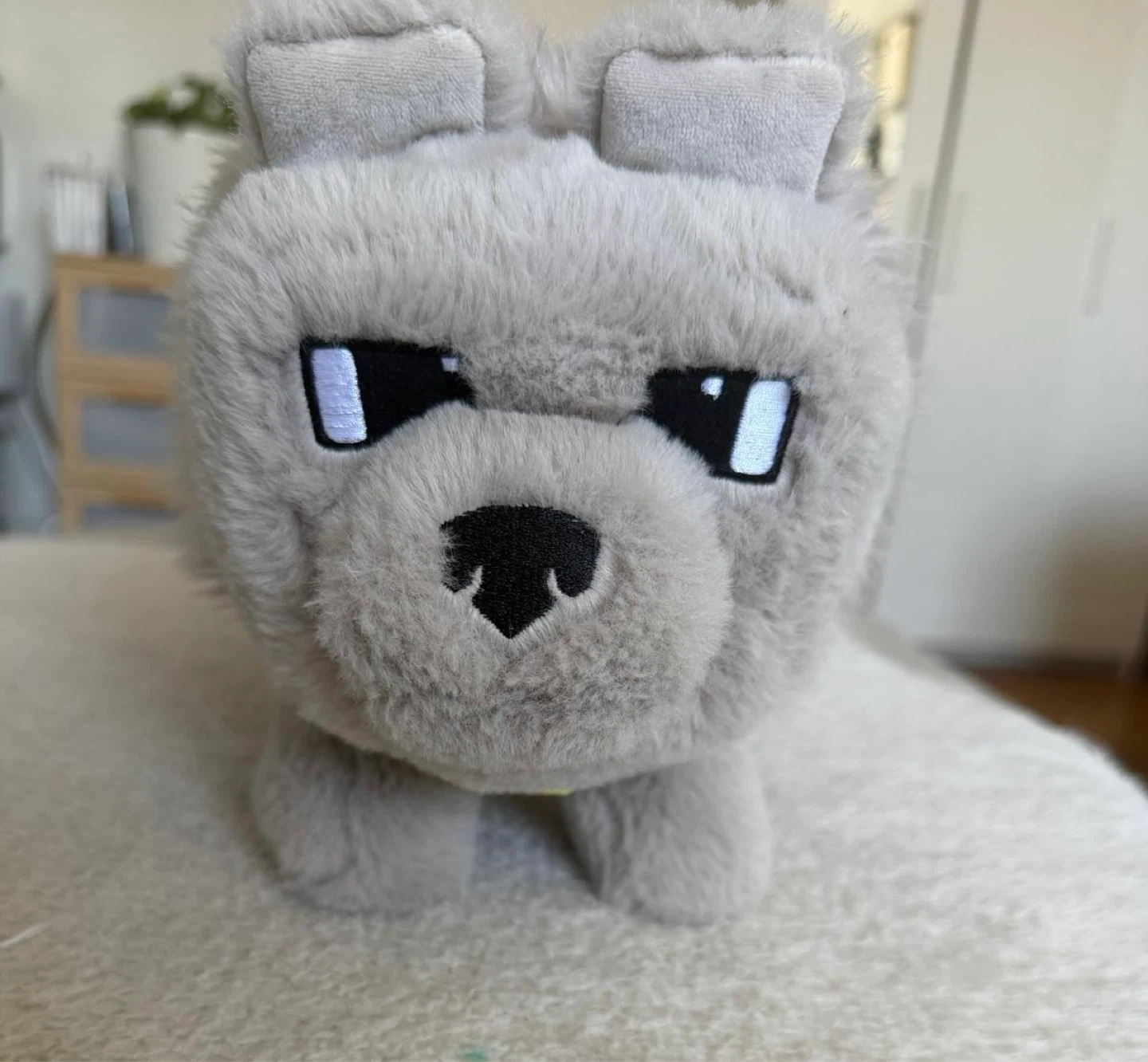 From A Minecraft Movie, this interactive Dennis plush wolf is fuzzy and soft to the touch but has a menacing growl.