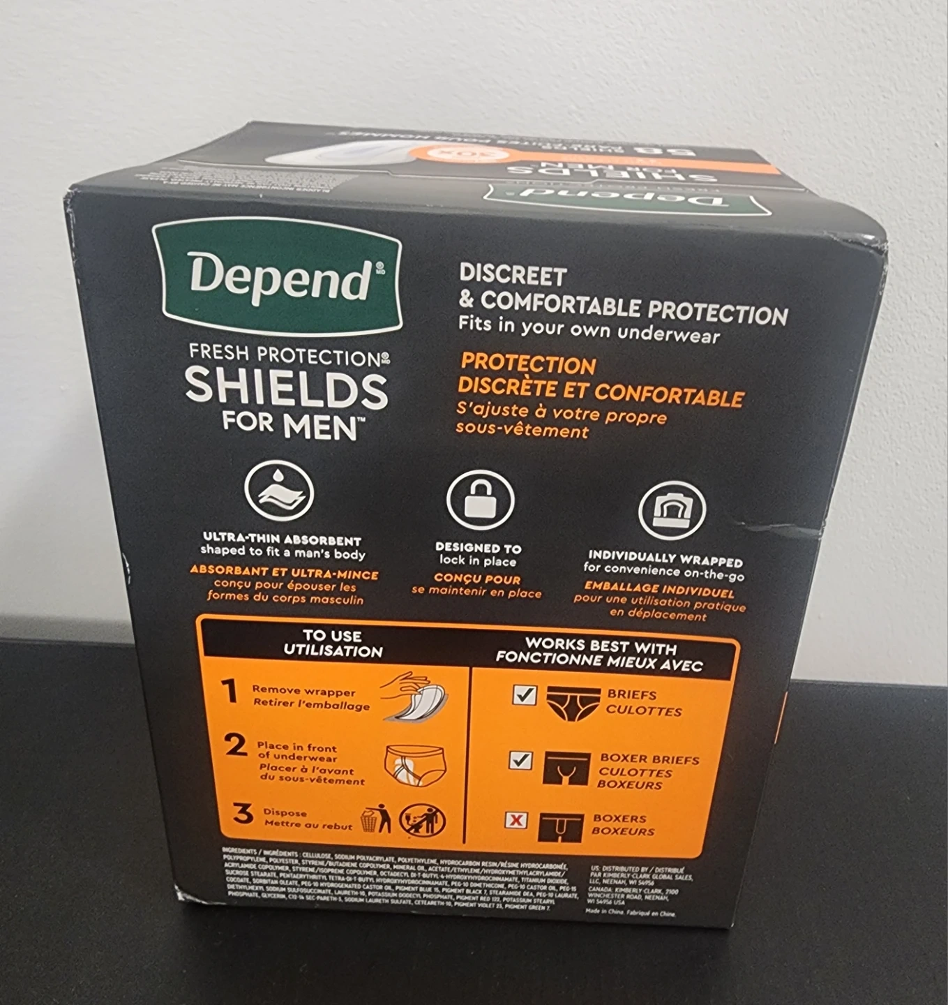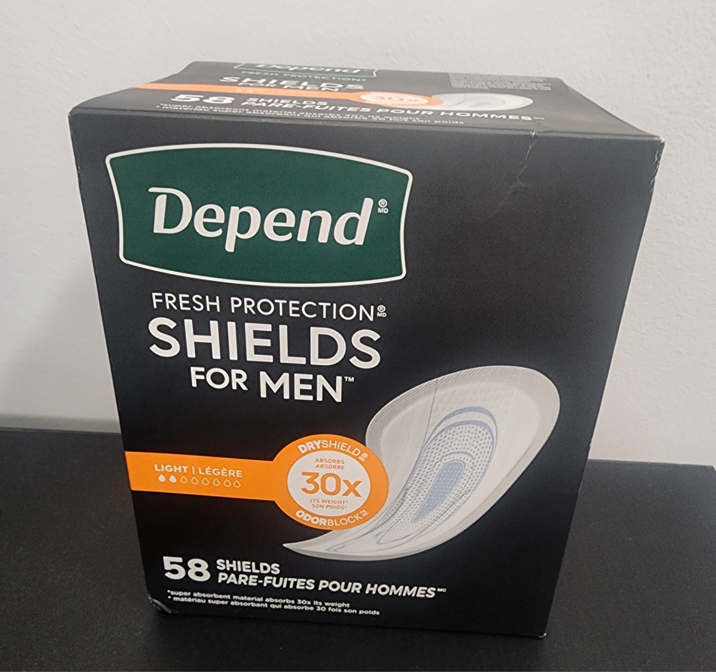 Depend Fresh Protection Shields for Men. Ultra-thin absorbent material is shaped to fit a man's body. Designed to lock in place for discreet and comfortable protection. Individually wrapped for convenience on the go.