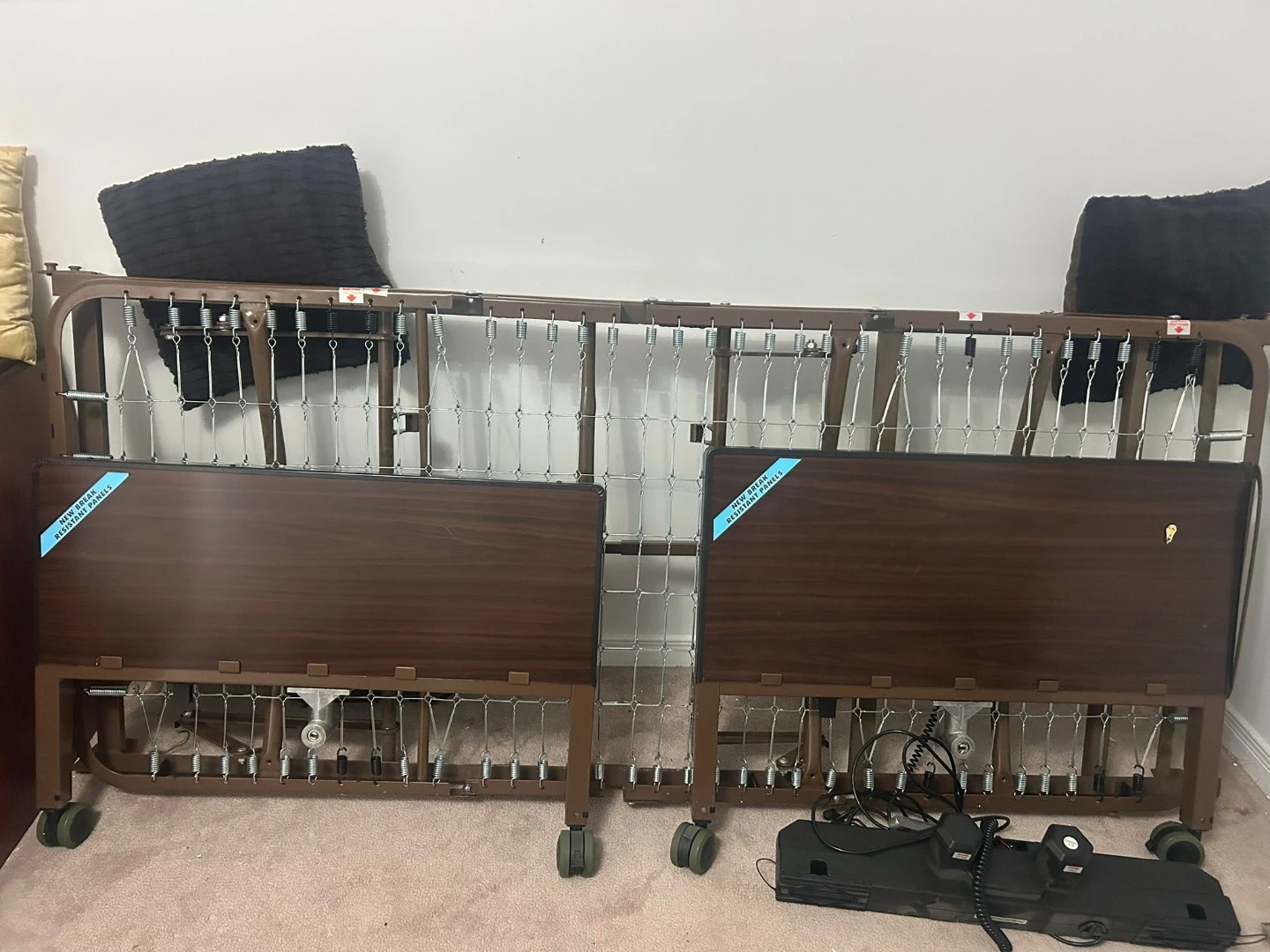 Metal with remote control and with removable sides and you can adjust the highest and move up and down the head Very good condition almost new used for one day then got stored original price 3000$ .need to be gone as soon as possible very urgent 500$ or best offer.