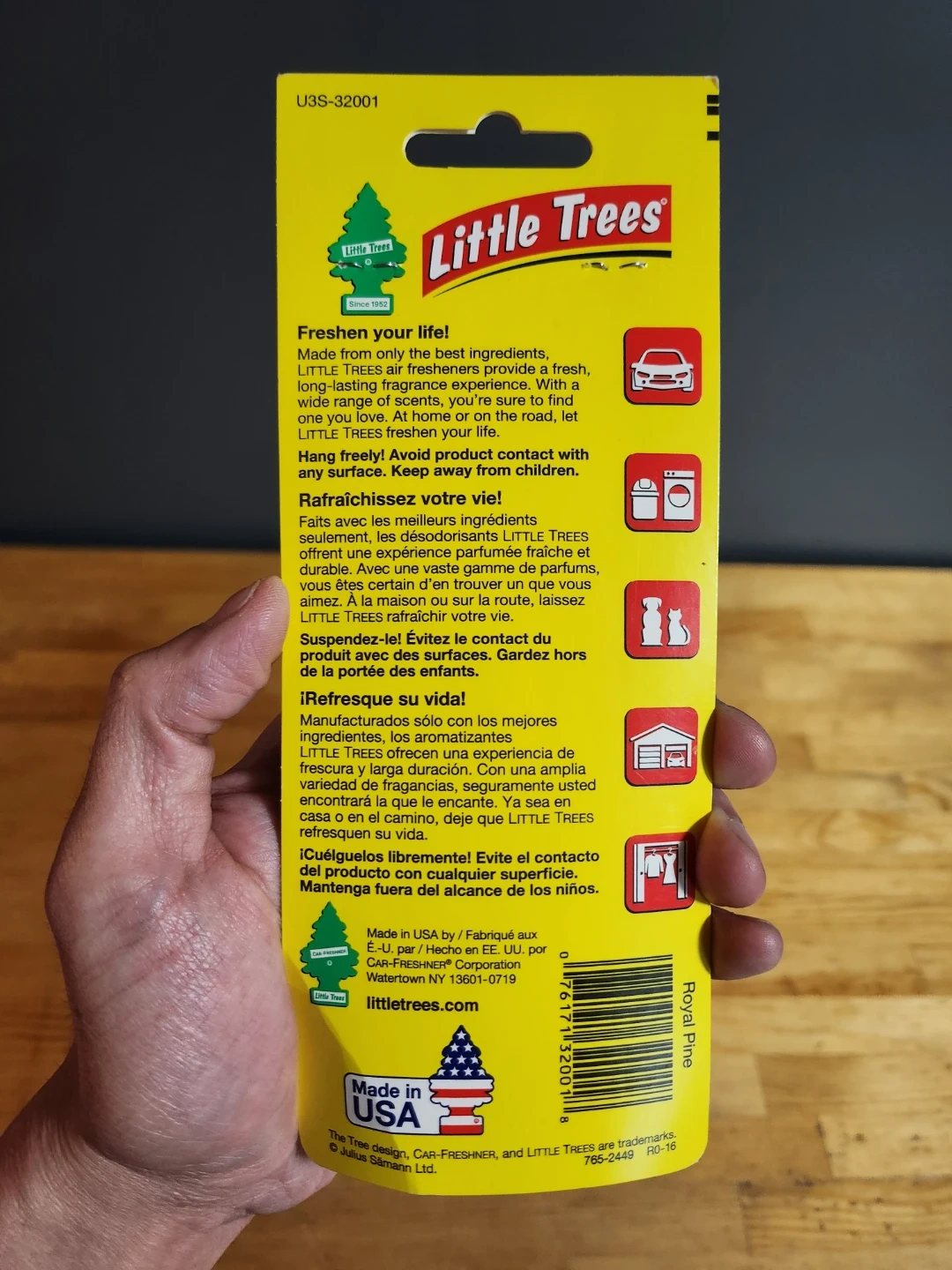 Freshen your life with this 3-pack of Little Trees Royal Pine air fresheners. Made from only the best ingredients, they're sure to provide a fresh, long-lasting fragrance experience. Hang them anywhere to keep your space smelling great!