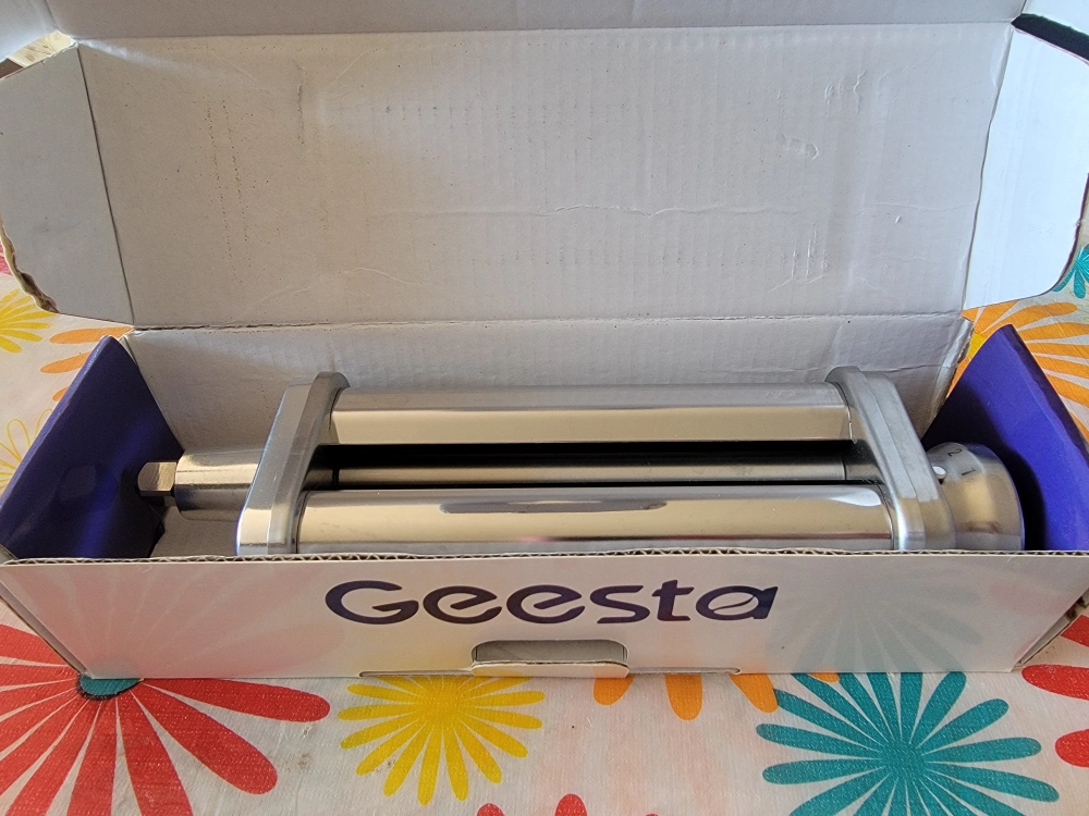 I've never used it and it's just sitting here, organizing my things and selling what I don't use Selling a brand new Geesta Homemade Pasta Roller! It features an 8-adjustable setting for 5.5" sheets. Perfect for making lasagna, dumplings, raviolis, and tortillas. It's stainless steel and comes in its original box ***The box says it comes with a brush, but there wasn't one in that box