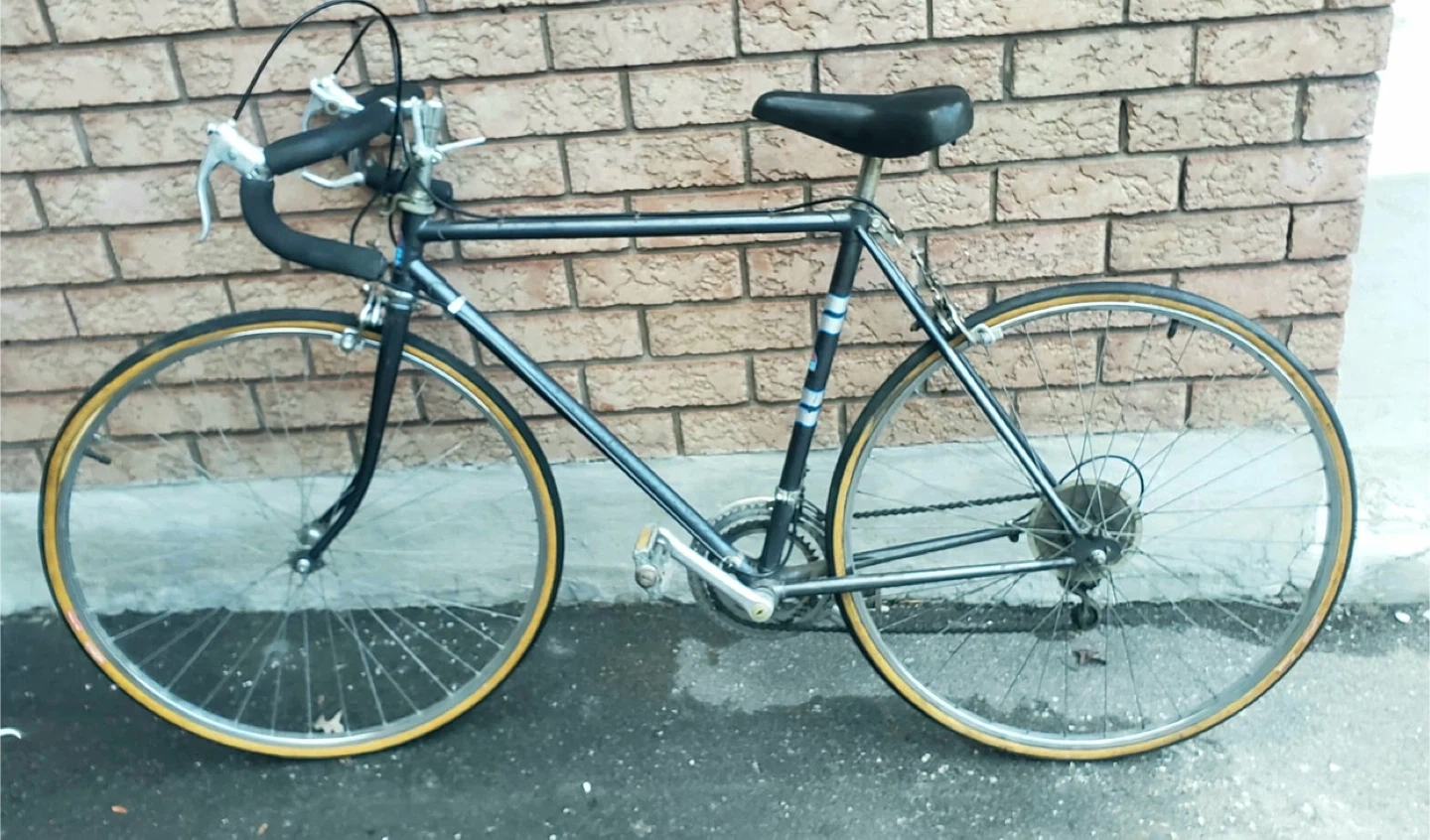 Classic road bike with drop handlebars. Features a durable frame and standard gearing. Ready for your next ride!