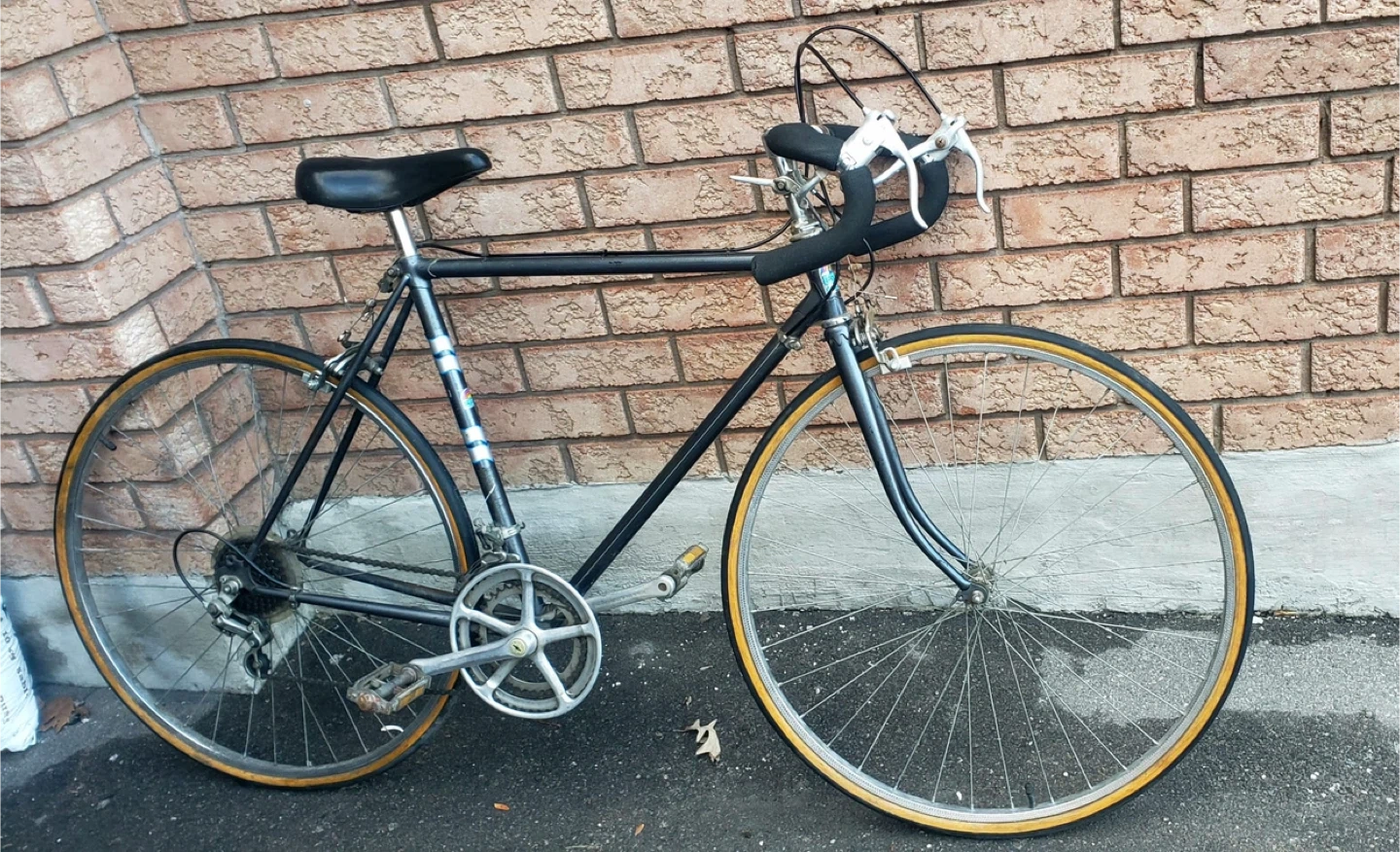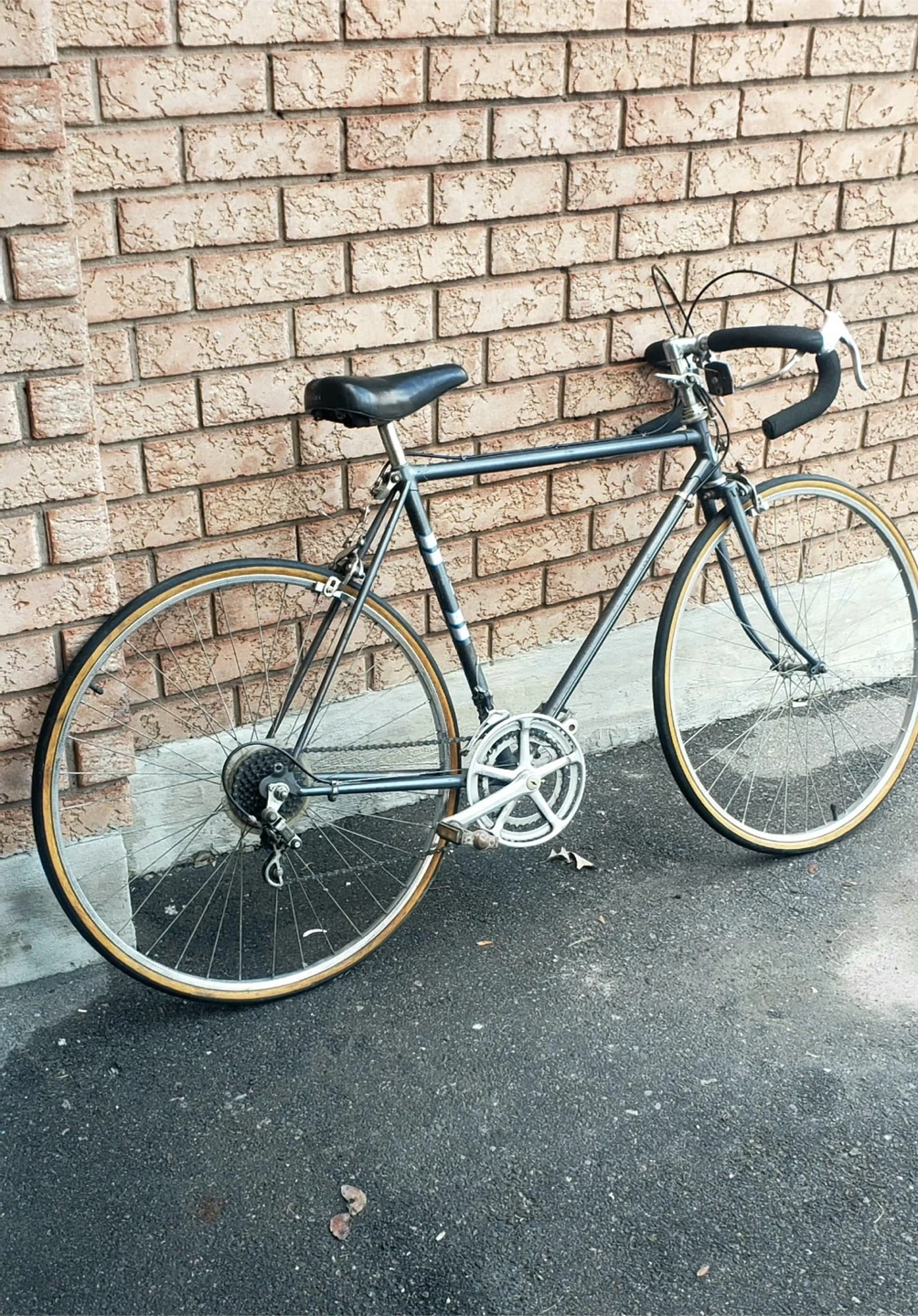 Classic road bike with drop handlebars. Features a durable frame and standard gearing. Ready for your next ride!