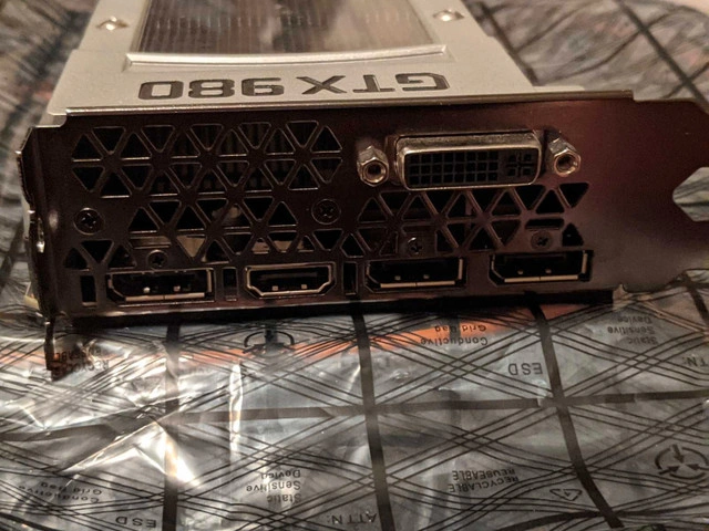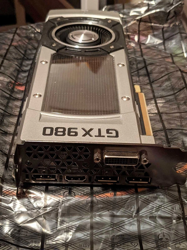 138Used GeForce GTX 980 video card in good condition. It has 4 GB of GDDR5 memory and supports DisplayPort, DVI, and HDMI. It's great for gaming or video editing. Model number 900-1G401-0000-000.