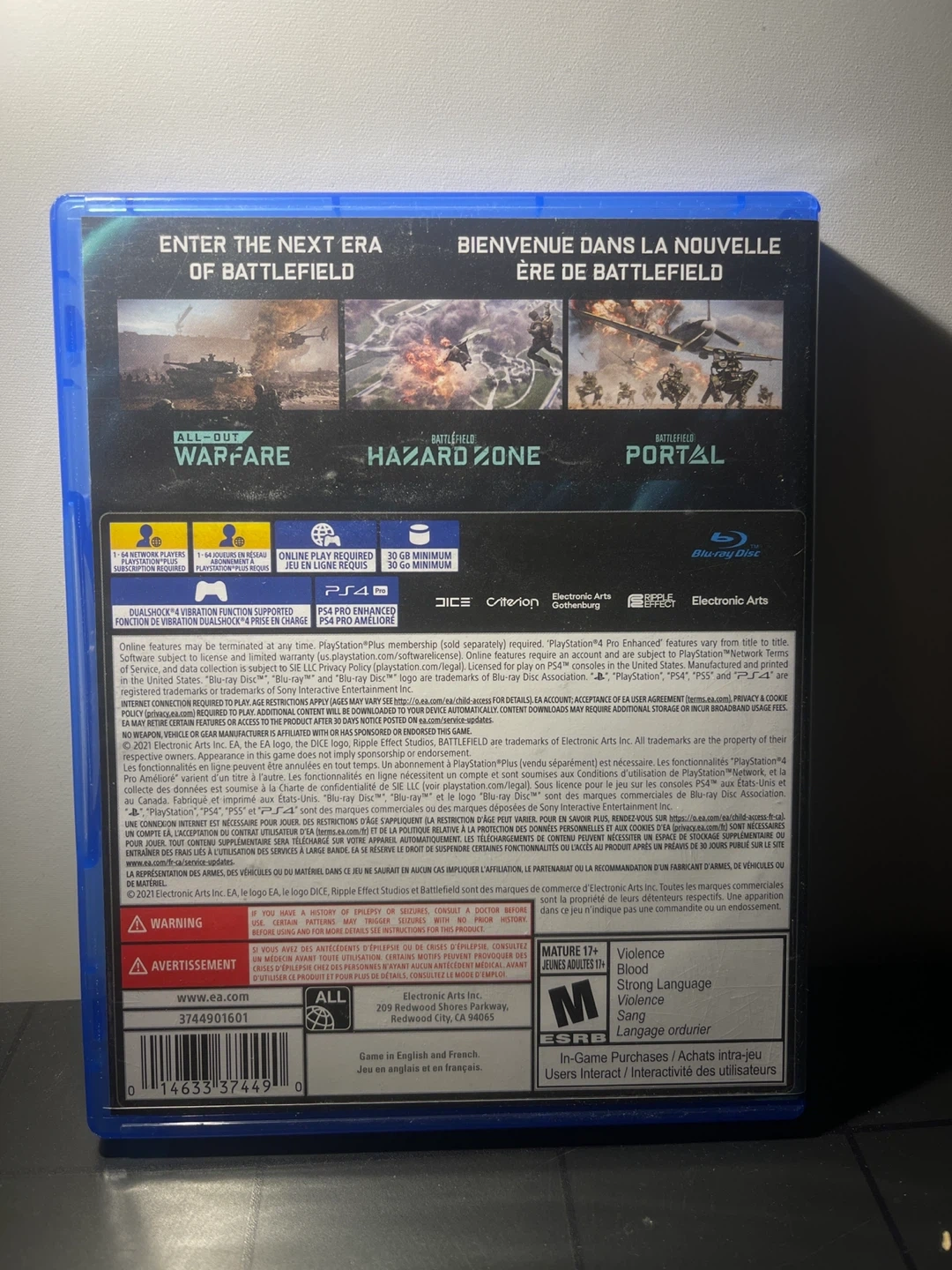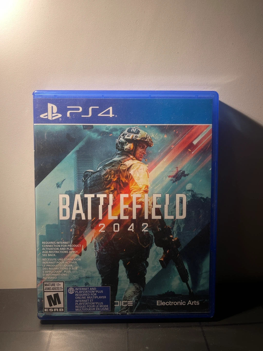 This is the PlayStation 4/5 version of Battlefield 2042. It's a first-person shooter game developed by DICE and published by Electronic Arts. Requires internet connection and PlayStation Plus for multiplayer.