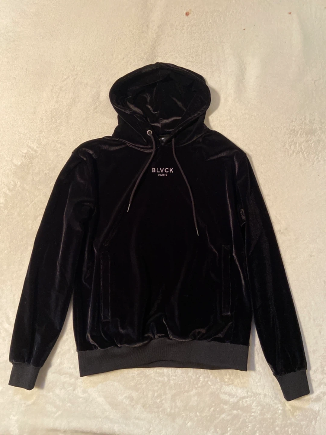 Selling a BLVCK Paris velvet hoodie in size XS. It's in great condition and super comfy!