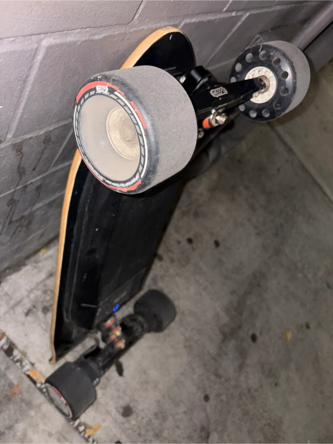 Meepo Flow-Belt Driven electric skateboard with a bamboo deck. It features 100MM Cyclone wheels and 5519W hub motors. Max load is 330 lbs, with a range of 24 miles and a top speed of 32 mph.