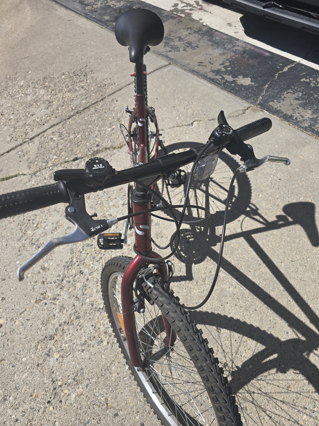 Red mountain bike. 26-inch wheels. Shimano components. Good condition.