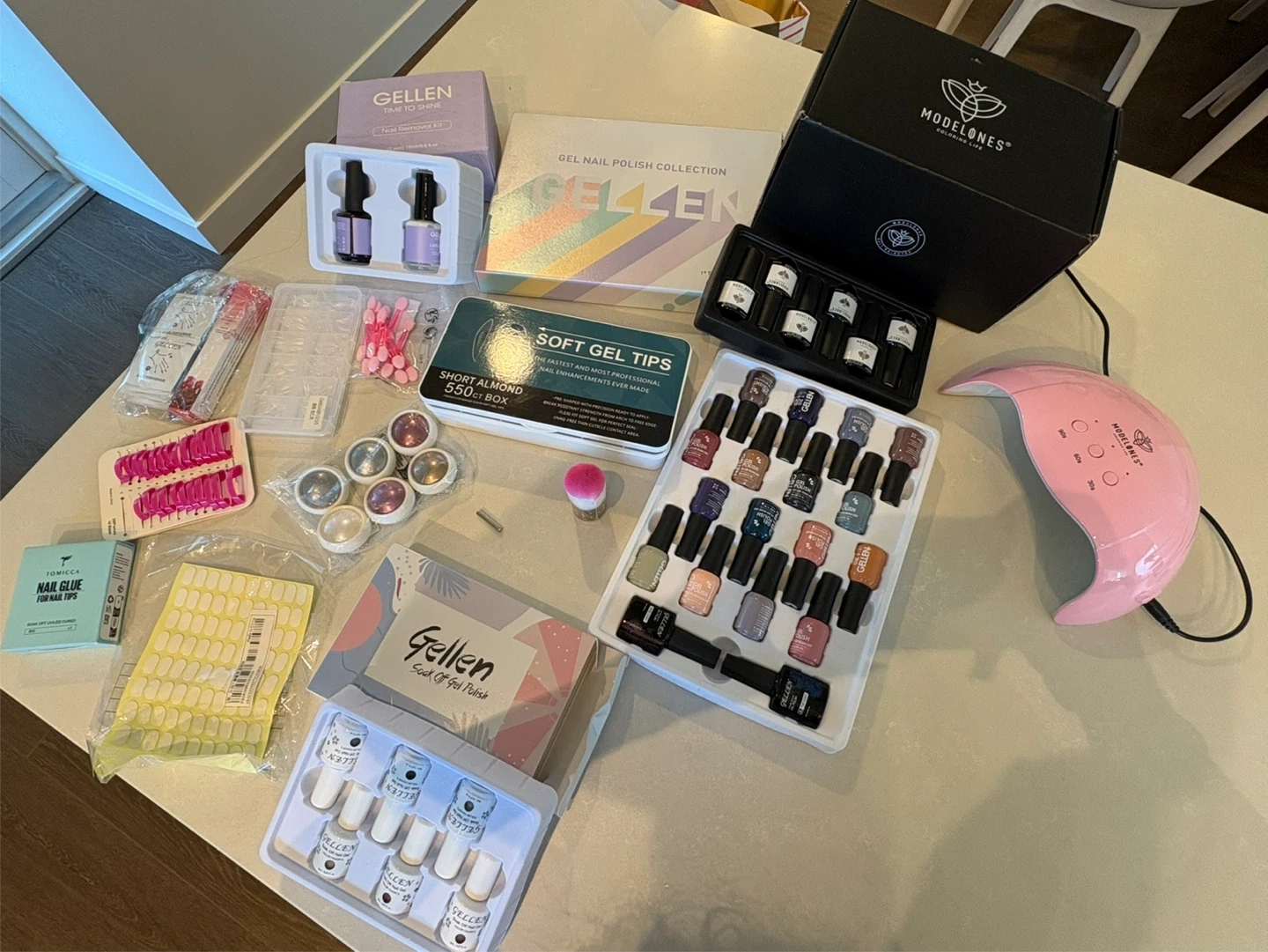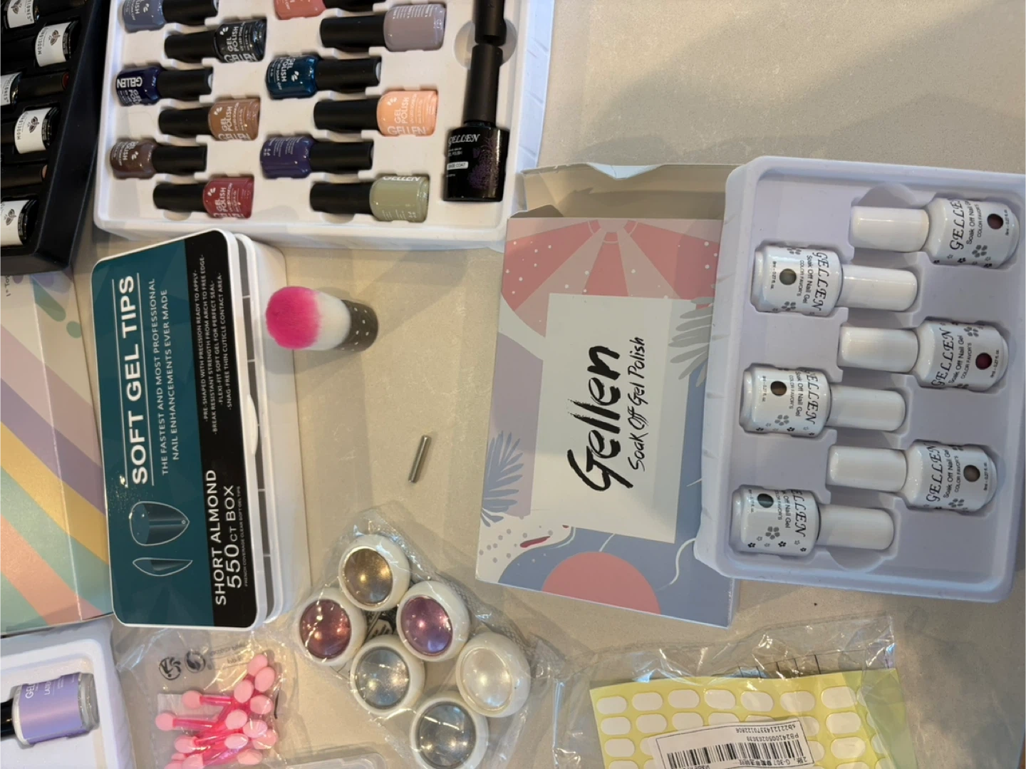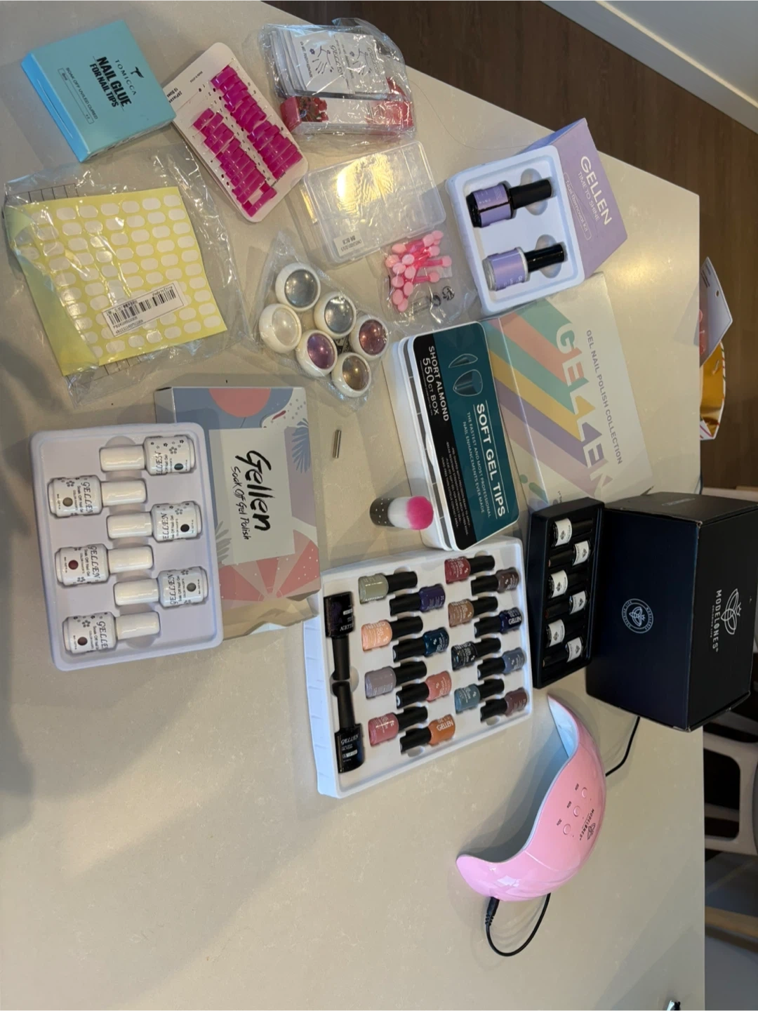 Selling a variety of nail polish and accessories! Includes Gellen gel nail polish sets, Modelones gel nail polish collection, soft gel tips, nail glue, and other nail art accessories. Perfect for creating your own salon-quality manicures at home. Selling everything in the picture together!