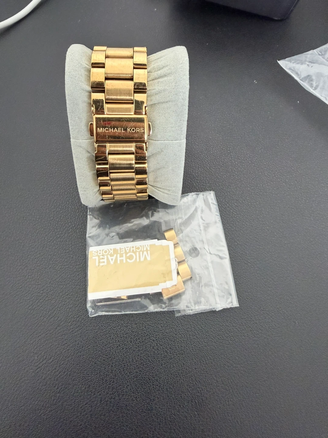 Selling a Michael Kors gold chronograph watch. Includes the extra links.