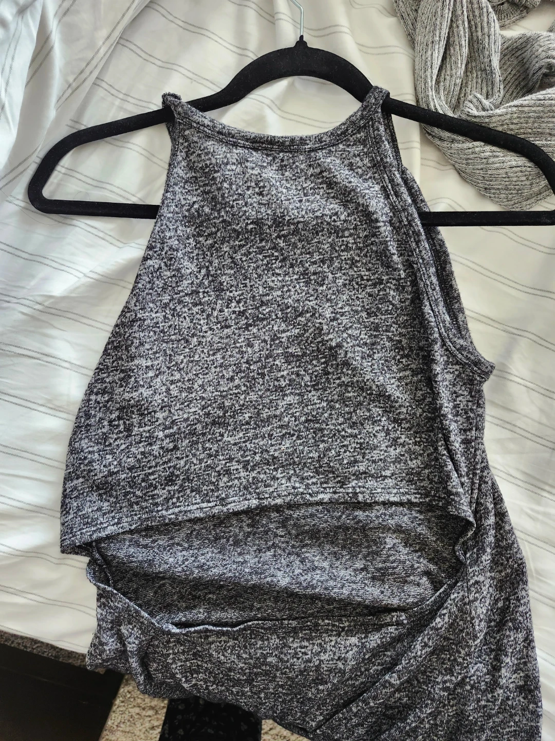 Grey marled knit dress with a cut-out back detail. It's