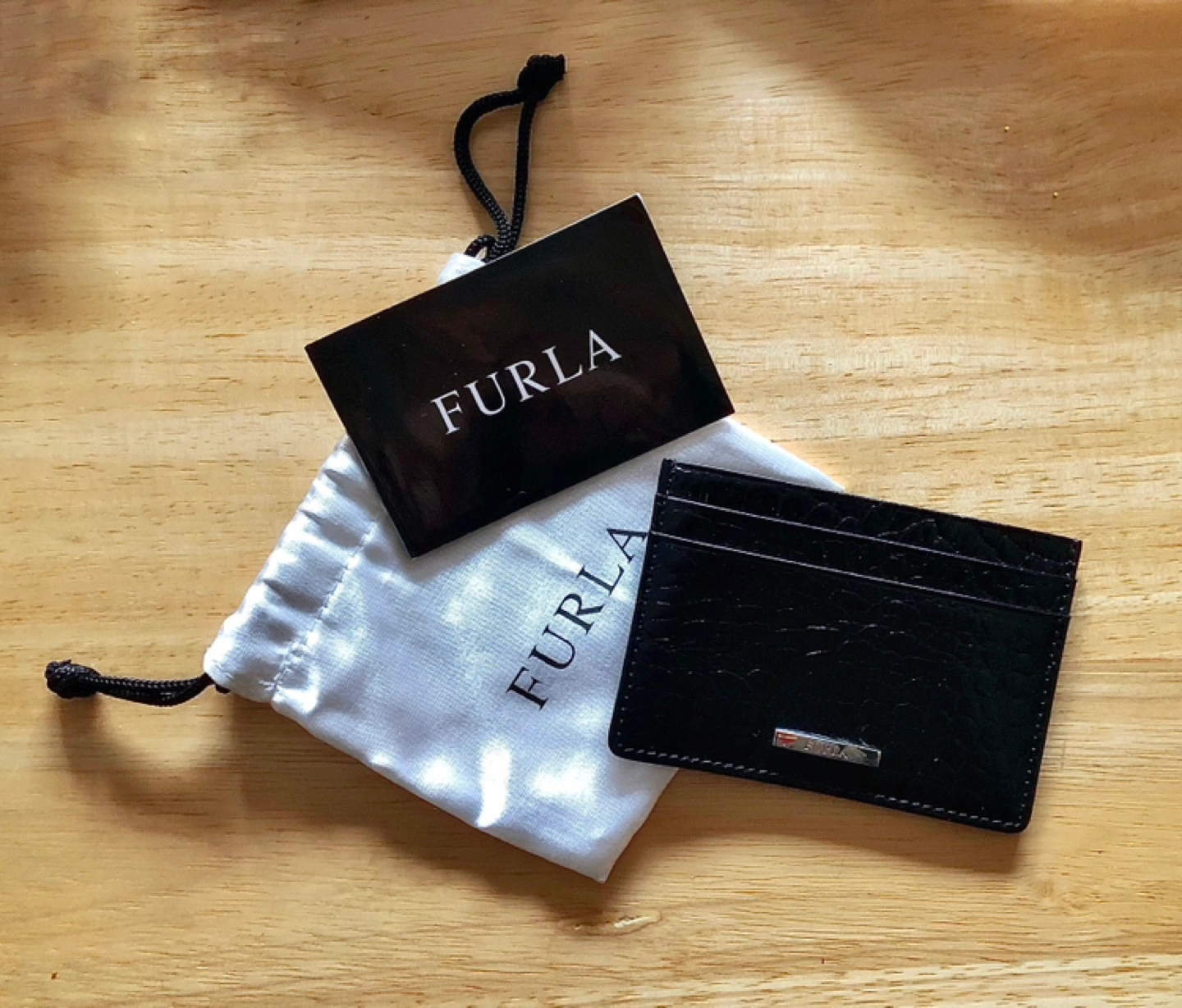 Furla Embossed Leather Card Holder, with original Furla dust bag, and Furla mini brochure