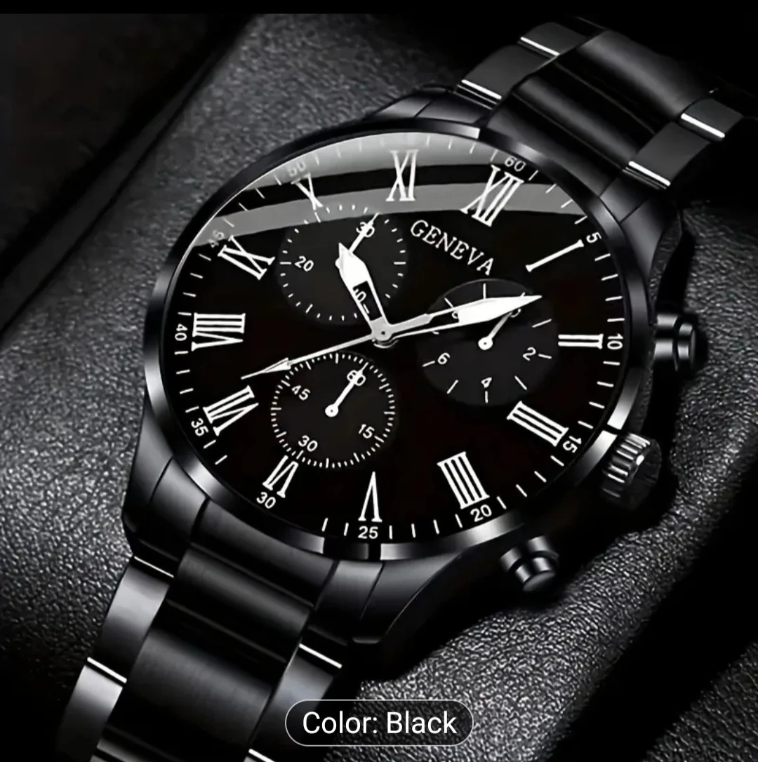 22Selling a stylish Geneva wristwatch! It's in great condition and features a sleek black design that will complement any outfit. This watch is perfect for adding a touch of sophistication to your everyday look