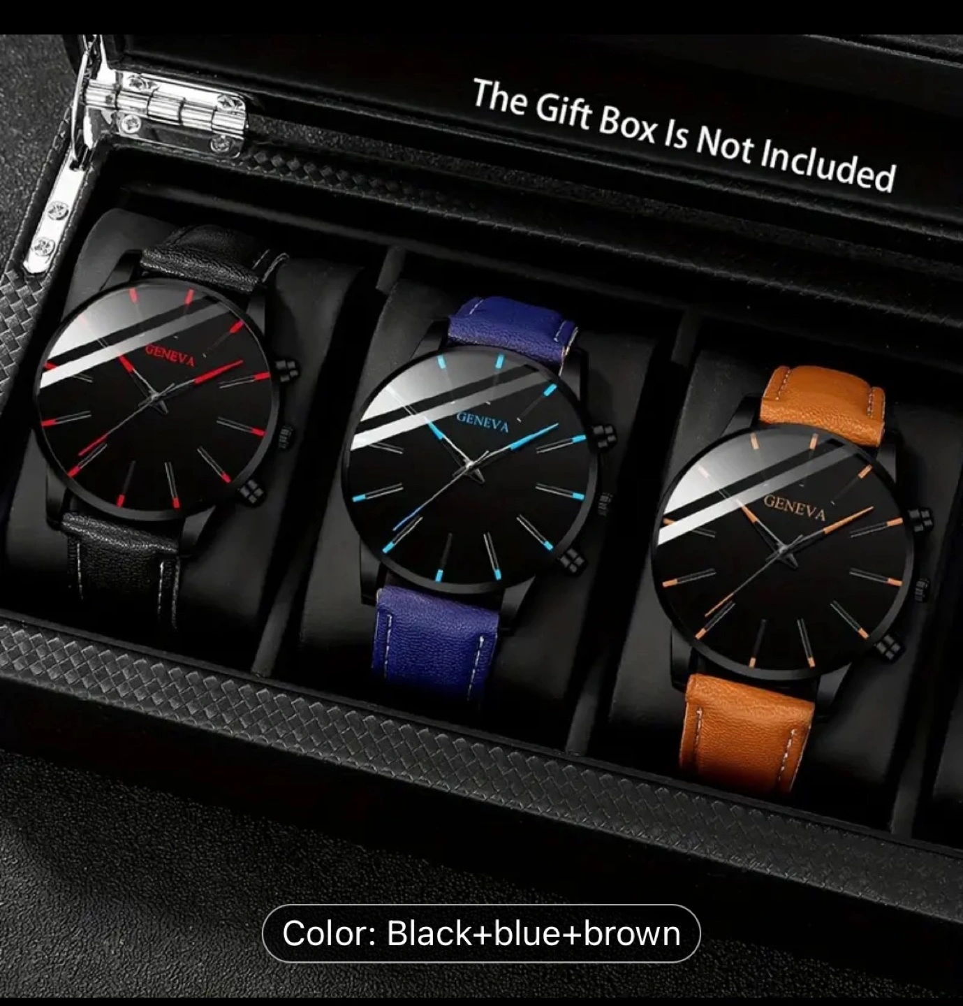 52Stylish men's watch. Black face, leather band. Multiple colours available. Simple design. Elegant Men's Business Casual Round Watch Set - Quartz Movement, Zinc Alloy Case & Faux Leather Strap - Perfect Gift for Valentine's Day, Christmas, Halloween, 3pcs/2pcs, Eid Al-Adha, Daily Wear