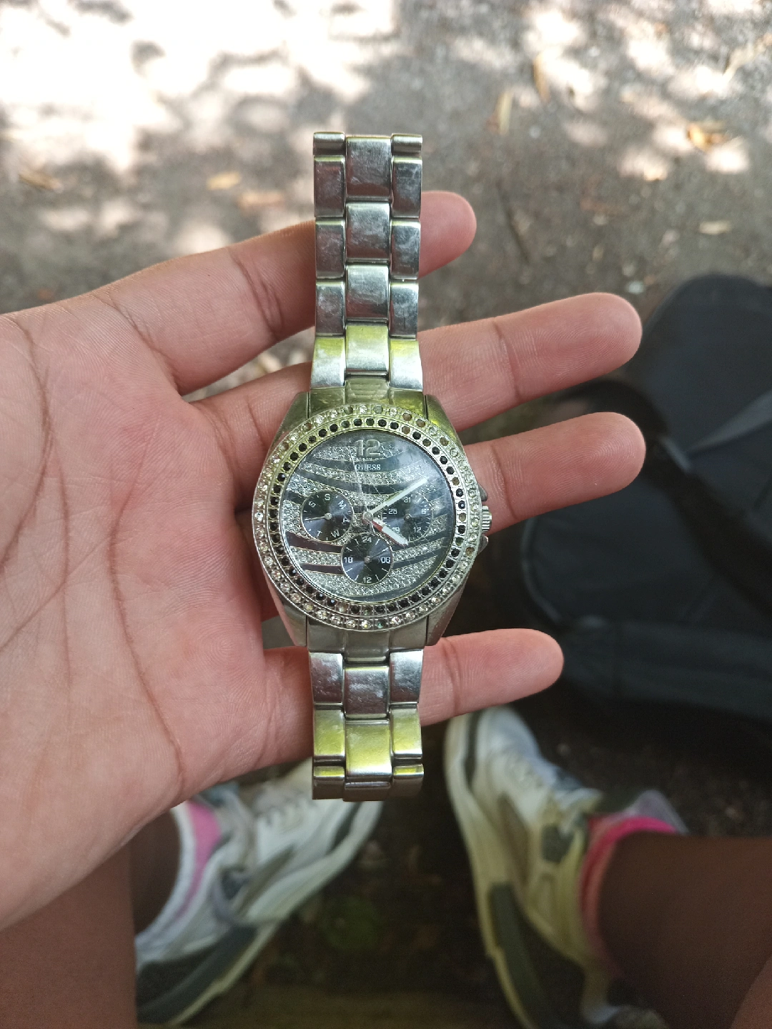 Selling a Geneva women's watch in a silver tone. It features a decorative crystal bezel and a multi-dial design. The watch has a stainless steel bracelet and is in good condition. It's a stylish accessory for any occasion!